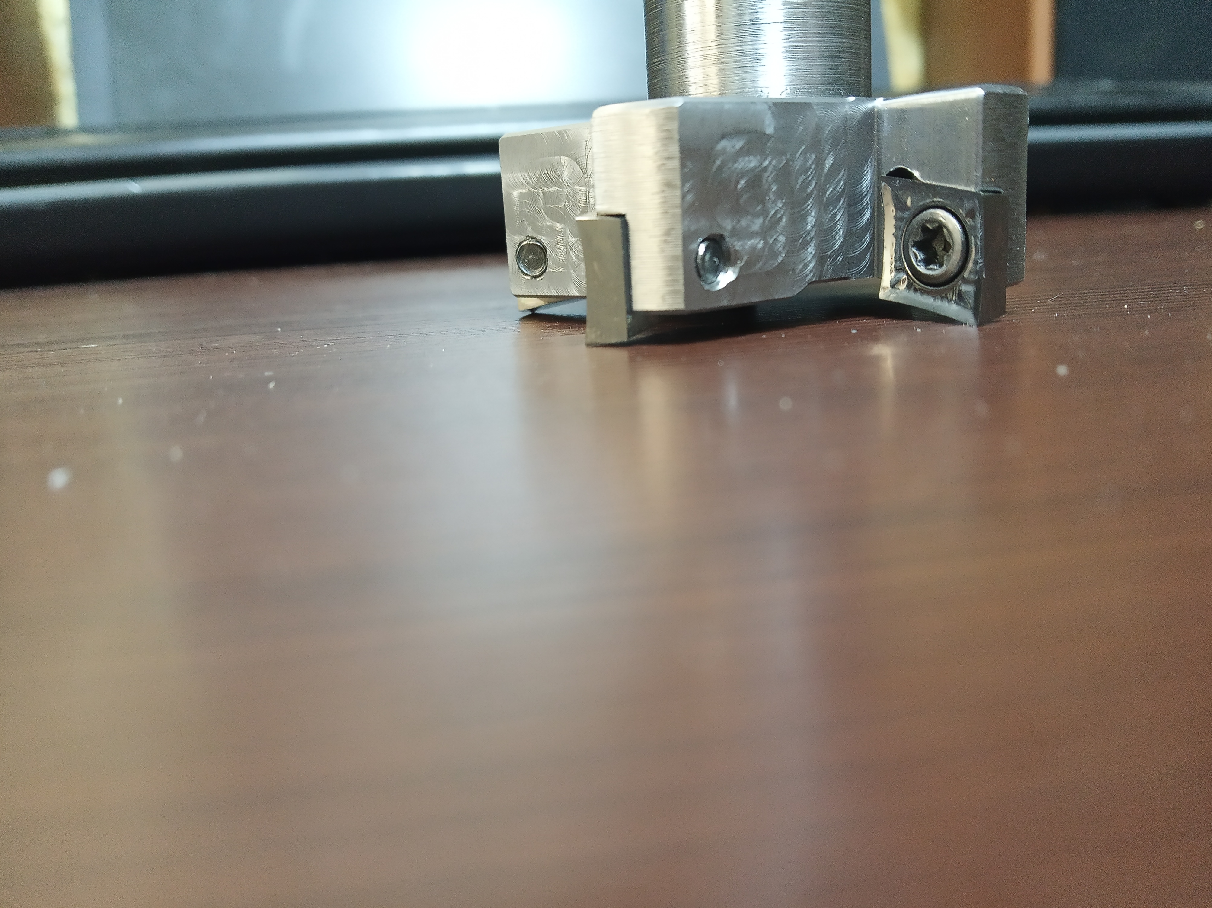 На резце тоже смотрел, но он стальной и пластина там одна, так что пофиг. А на фрезе запилил под углом, это просто, а площадь контакта на порядок увеличивает. А повторяемость нужна, если всеми пластинами грести по-взрослому, необходим более-менее равномерный съем. У меня когда одна пластина из 3х криво встала - сразу почувствовал.
