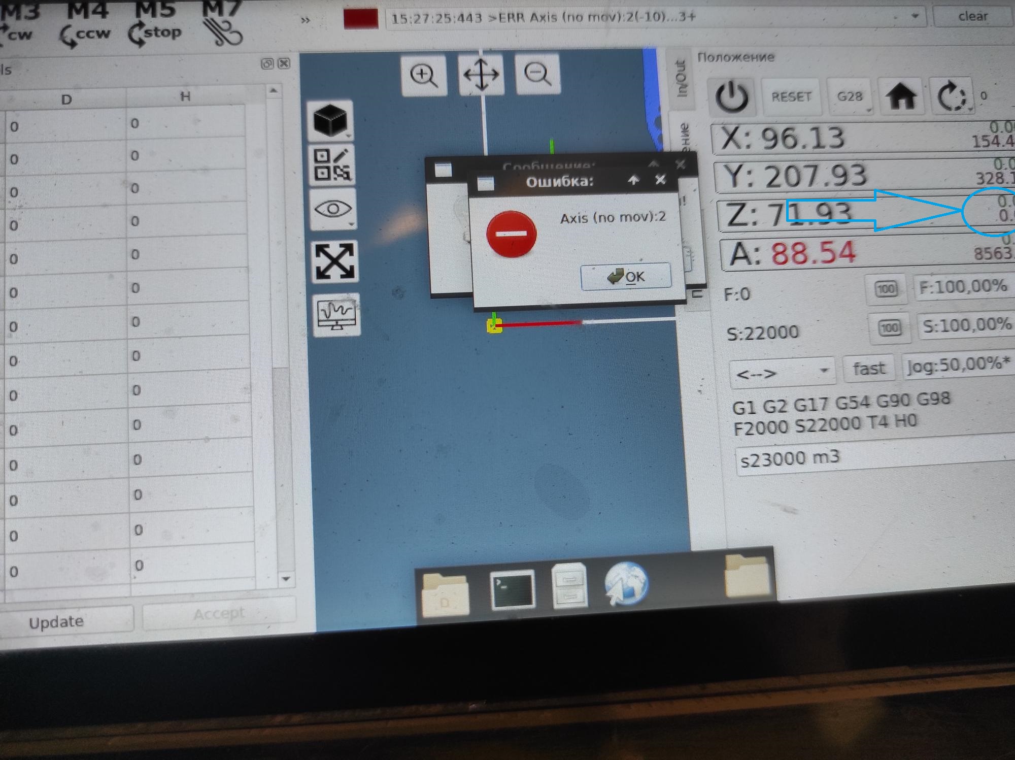 daemon78 писал(а): Не совсем так. Он сначала подымает по оси Z, а когда доходит до 0 то выдает эту ошибку. Вот и получается Z0 на машинных координатах.