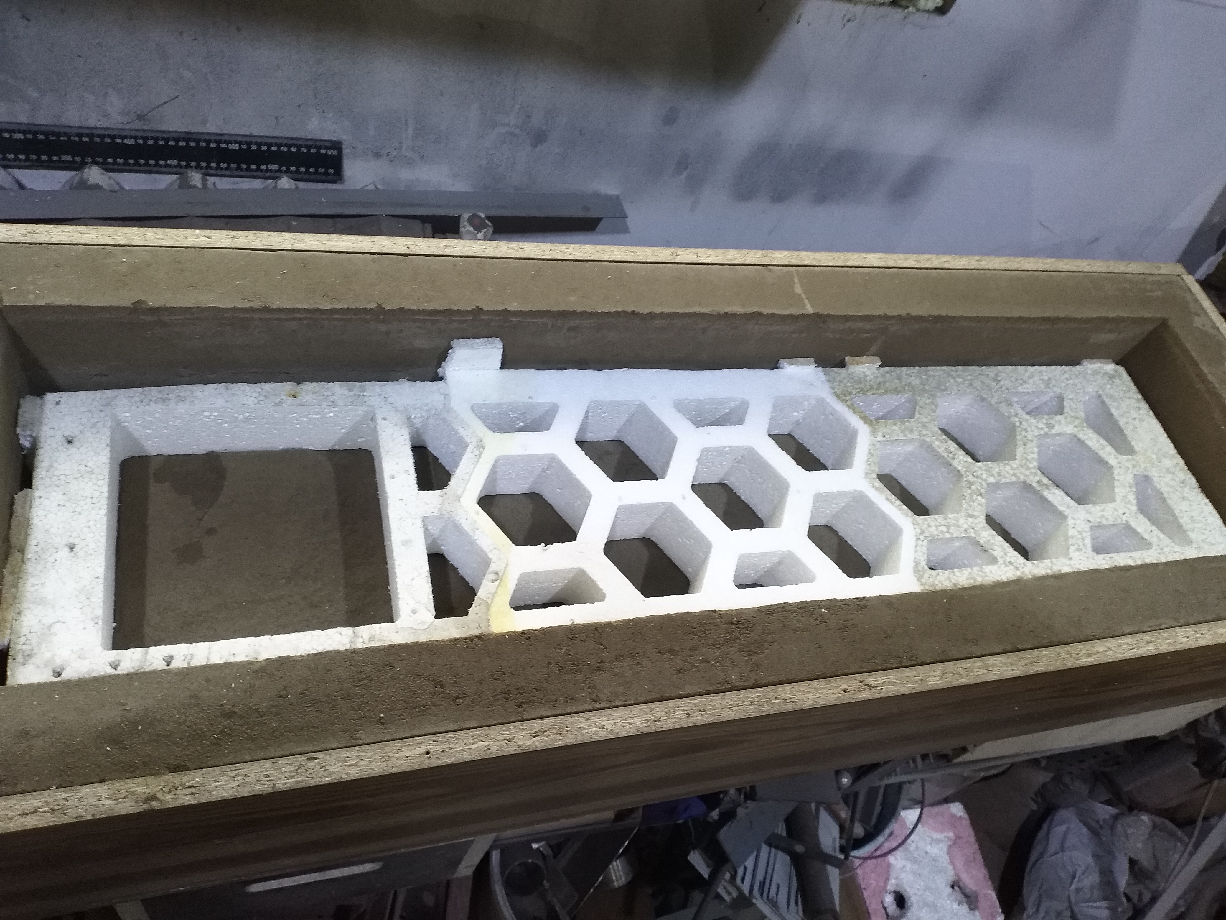 Формовал все по простому, песок+жидкое стекло. Тут был следующий косяк. Из-за основания из фанеры было невозможно выжечь модель, в итоге оторвал выступающие части. После ремонта формы долго просушивал. Далее плавил и отливал.