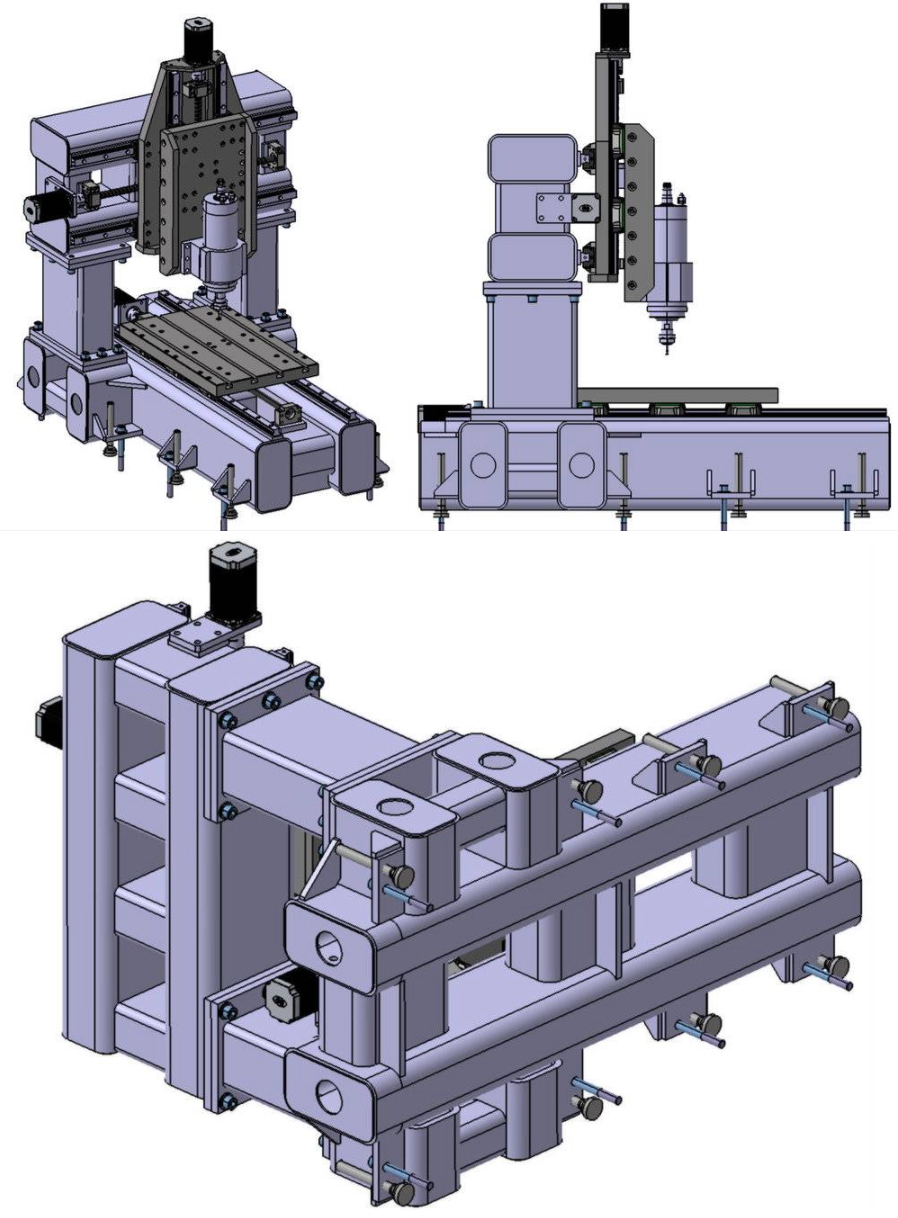 - ось З напоминает жесткий не деформируемый треугольник, который не очень сложно сделать на лазере (изготовить детали на лазере), + плоскости обработать можно на стандартном механическом фрезерном станке, должен поместиться