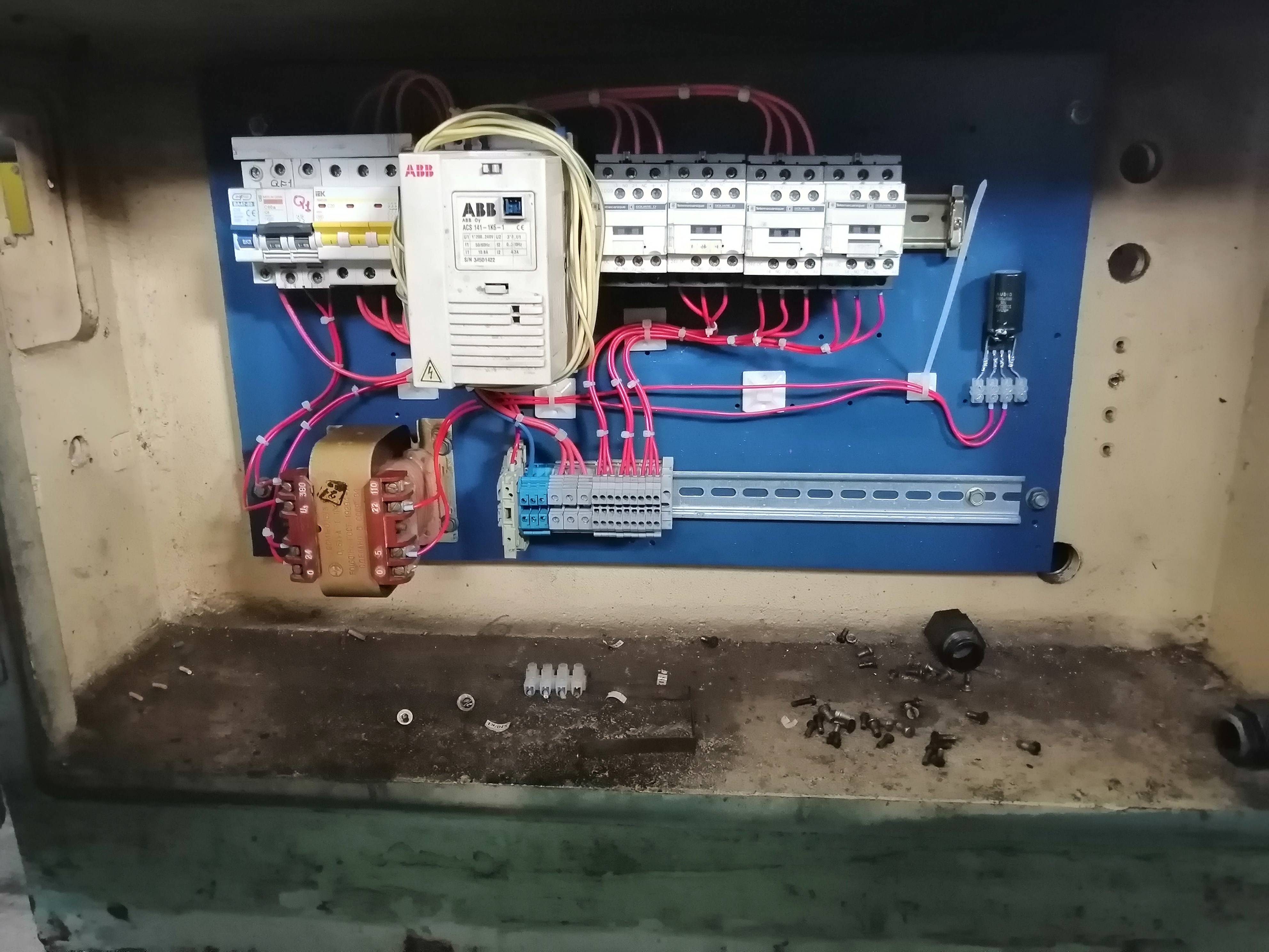 Всю электрику было решено выкинуть и собрать новую. Поставили частотник на управление двигателем шлифовальной головы, Перевели всю систему управления на 24В постоянного тока.