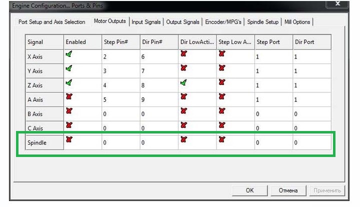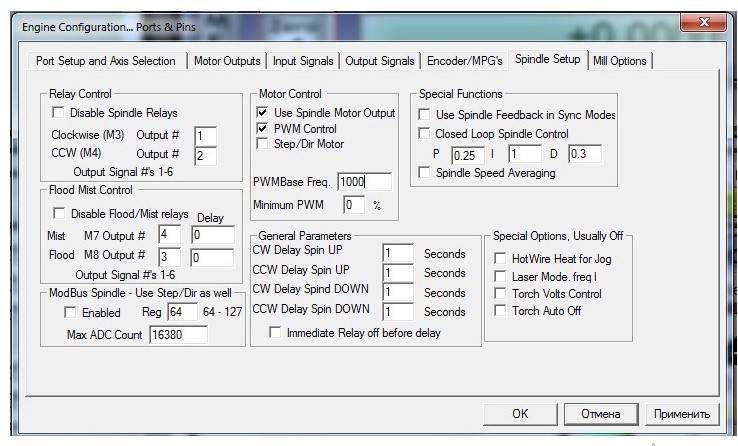 Ну и кроме настроек шпинделя должны быть настройки исходящих сигналов