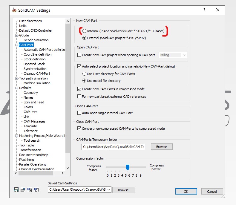 Надо только иметь ввиду - что СолидКАМ постоянно работает именно со своим временным файлом во временной директории, а записывается всё в модель уже при закрытии окна СолидКАМа. Причём он автоматом и сохраняет все изменения в геометрии модели, не спрашивая об этом.