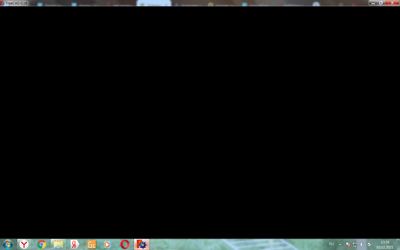 Добрый день всем! У меня такая проблема. Загрузил FreeCad 0.18.4 Включаю. Загружается стартовая страничка. Но не могу ничего создать и начать. Любое действие в программе переключает её в чёрный экран. Т.е. есть в верхнем левом углу название программы, в правом верхнем углу свернуть -развернуть- закрыть. И всё. Ничего. Что я сделал не так?