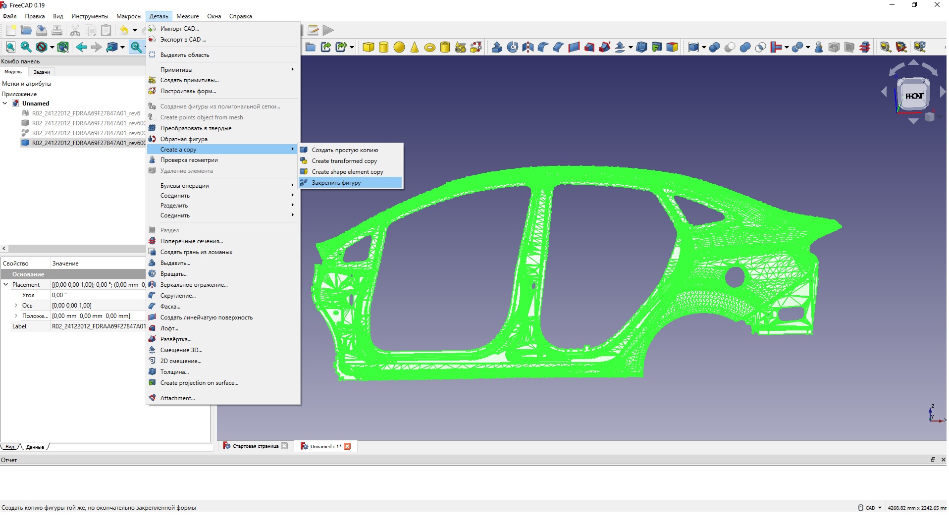 Долго уже мучаюсь с одной задачей, хочу выфрезеровать модель, нужен ваш совет. Есть у меня модель боковины один к одному от оригинального автомобиля, файлы есть в расширении STL, igs, wrl. Решил поработать с расширением STL, открываю стл и дальше в верстаке парт создаю фигуру из полигональной сетки, потом делаю твёрдое тело и нажимаю кнопку закрепить фигуру чтоб убрать сетку, фрикад полчаса думает и в последствии получаю туже модель со сеткой хотя в ютубе вижу что сетка убирается после таких манипуляций. У меня во врикаде почему то кнопка называется "закрепить фигуру" а на сайте и по видео у всех называется "уточнить форму" хотя фигура кнопки одинаковая, может в этом дело? Я бы файл выложил на общее обозрение но это комерческая собственность предприятия и могут по шапке надовать. Может я вообще в неправильном направлении иду, мне по сути просто нужно выфрезеровать фигуру боковины без отверстий и прочих конкретных/точных форм лиш бы было видно силуэт (типа как плоская статуэтка).