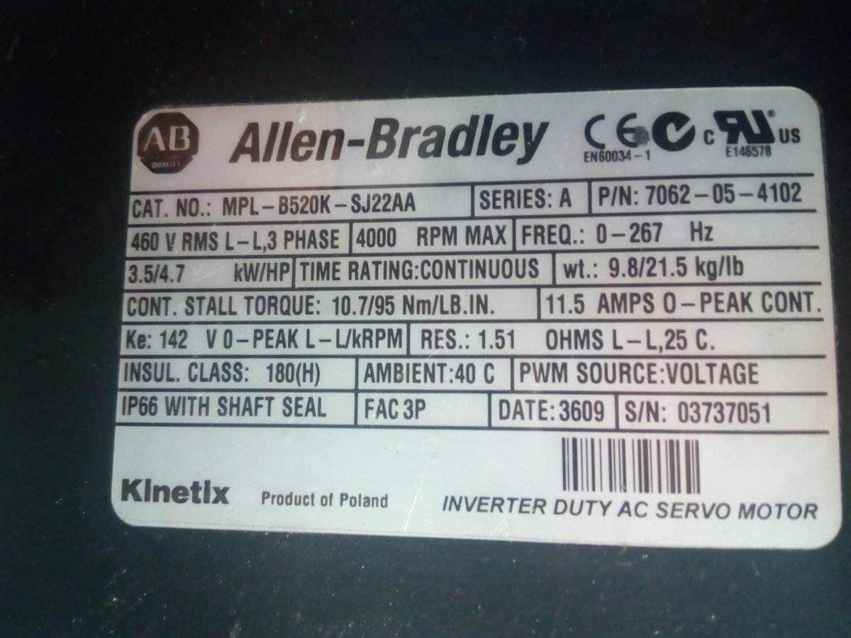 Добрый день.VitalikD писал(а): ↑ Обычный мотор на 4 пары полюсов. Привод должен иметь соответствующий ток и напряжение и понимать установленный энкодер. Энкодер, в случае чего, можно заменить на совместимый, но обязательно для восьмиполюсного мотора. В табличке написано, что противоэдс мотора, измеренная между фазами составляет 142 * rpm /1000. Это означает, что напряжение на дц шине привода должно превышать это произведение для требуемых оборотов. Вобщем, привод может быть любым для трехфазного синхронного мотора. Обороты будут ограничены напряжением питания, момент фазным током.