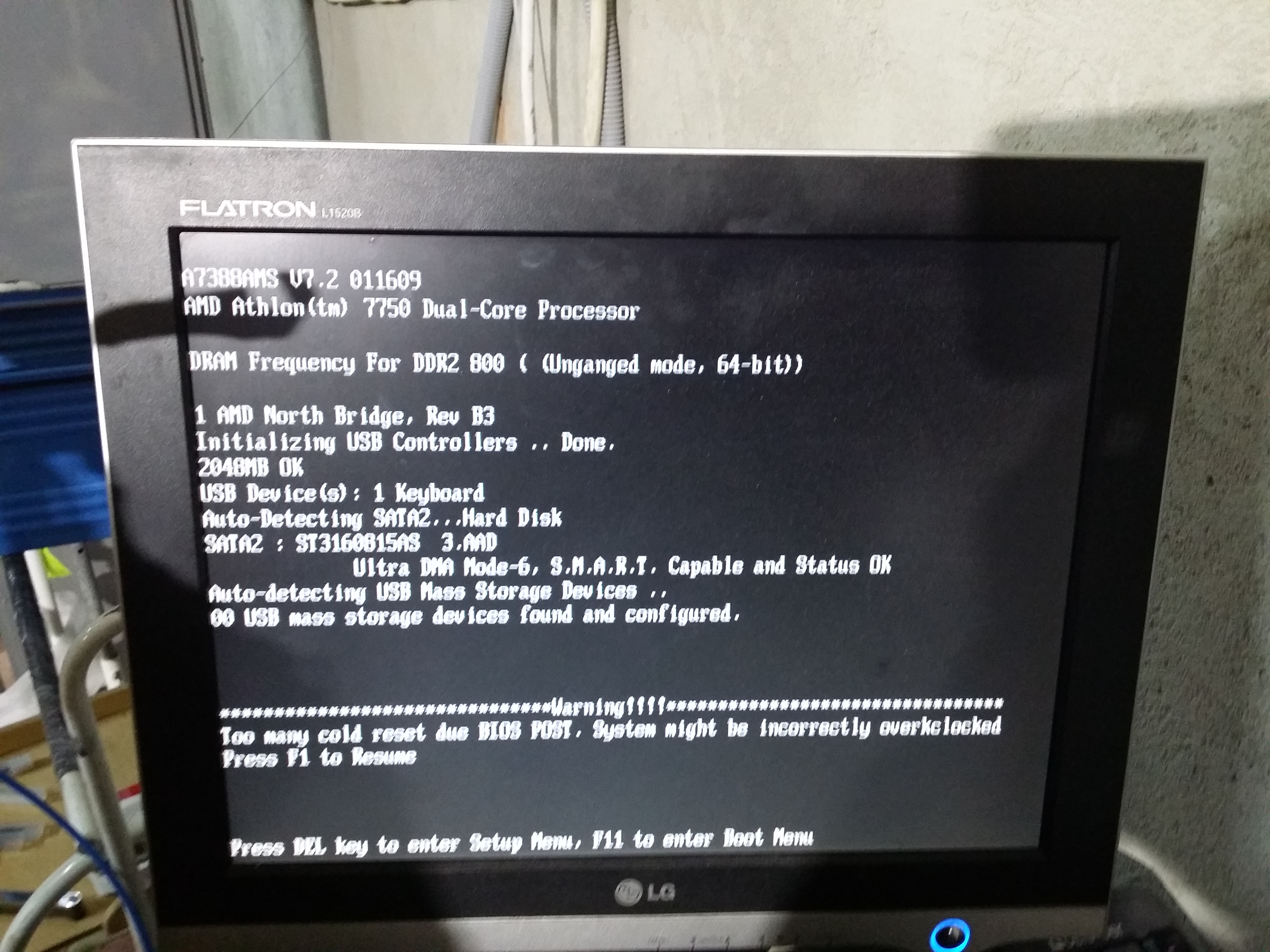 Подключил обратно родной - запустился, как ни в чём не бывало, правда биос дэфолтный нажал запустить. Ну и загрузился.