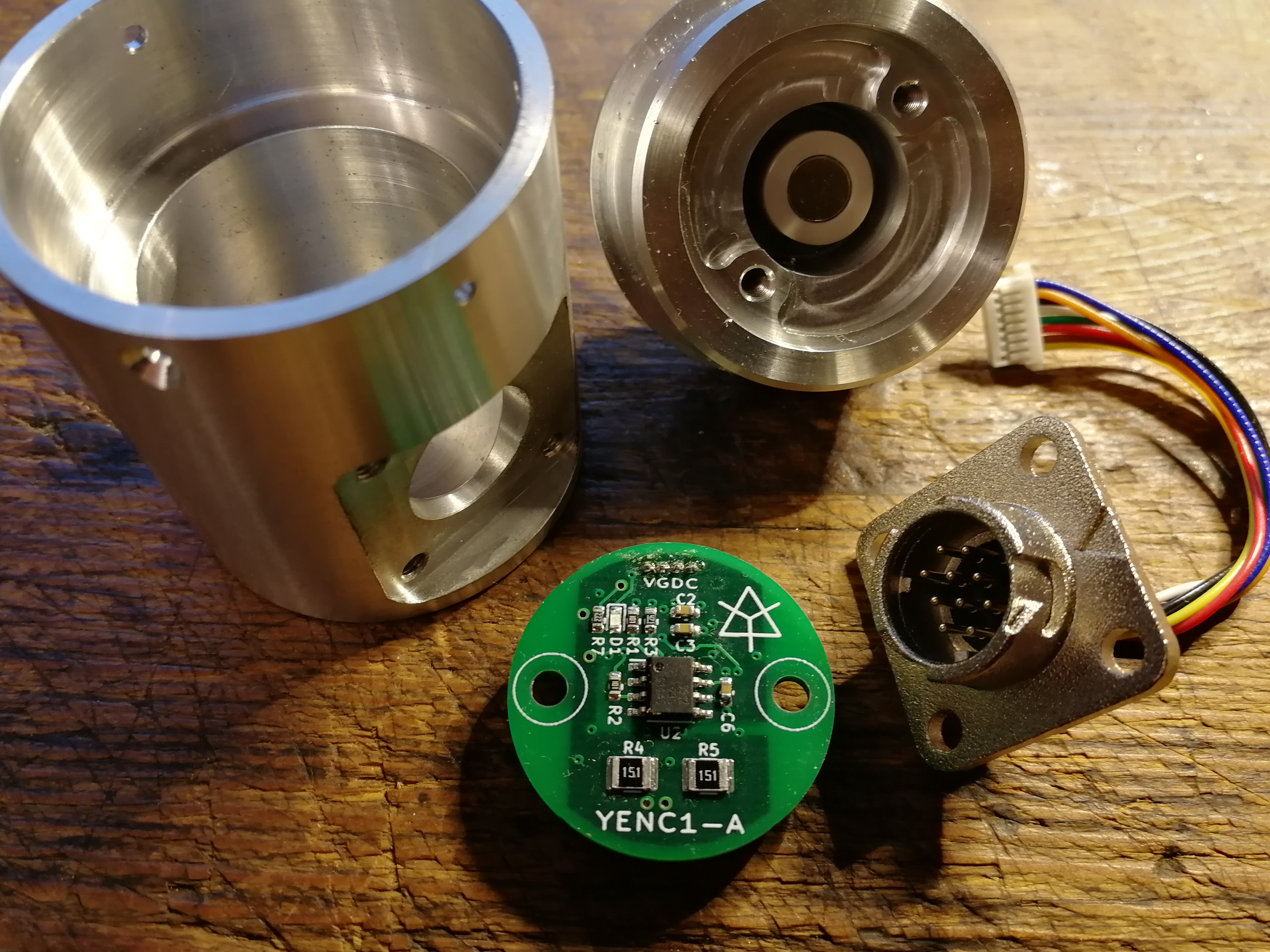 сколхозил энкодер из TLE5012B. оч просто конструктивно. радиальный магнитик на торец вала, на ним - SO8 чип. и все, по сути. вроде как 15 бит получается. STMка по SPI его опрашивает и отвечает сервоусилку по 422.