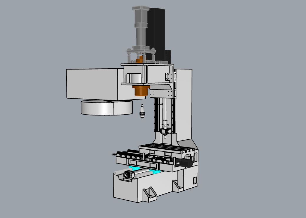 Изменений не так много. Увеличили длину станины, соответственно и толщину колонны. Набросал защиту, прикинул магазин на 12 инструментов. Пытаюсь продумать как это будет обрабатываться. Пара усп облегчила бы задачу.