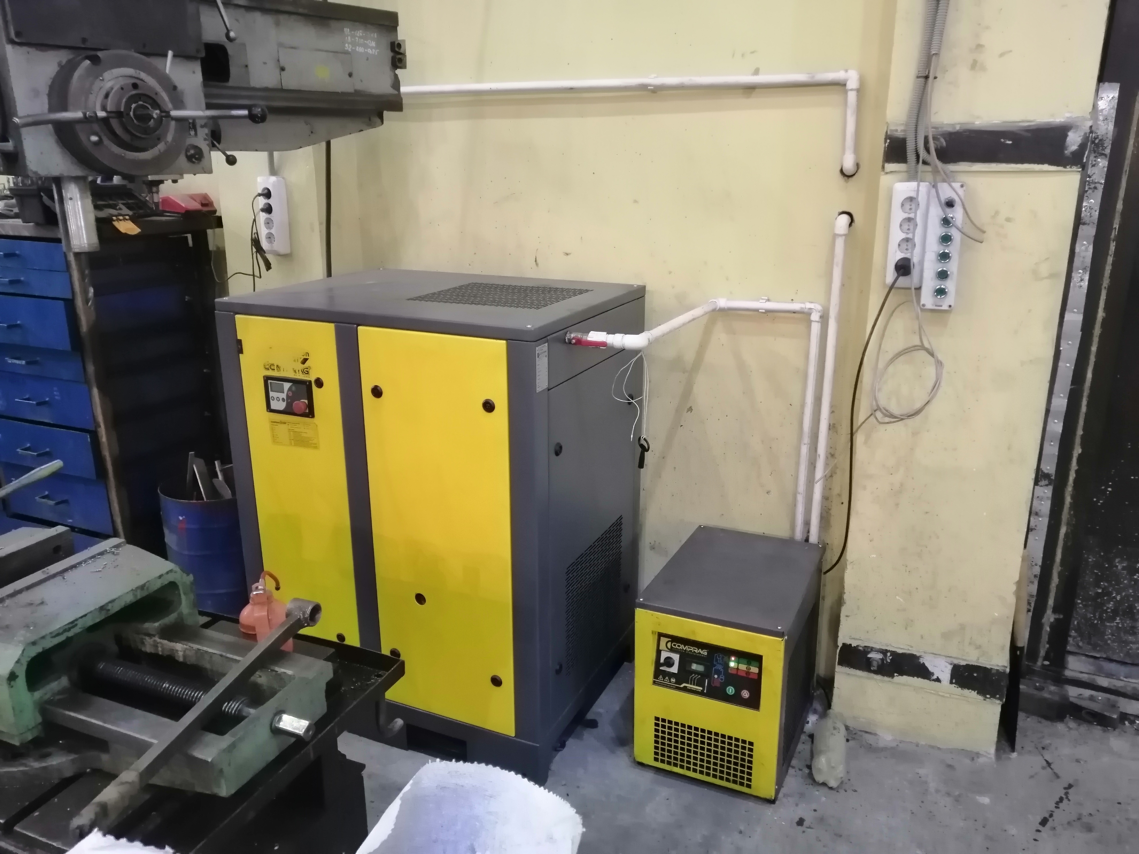 Подумал, подумал, бросил станок и заменил поршневой компрессор 500л.мин, на винтовой 18квт который починили. Пусть пока в цеху пашет, а то поршневик достал. Громкий как паровоз.