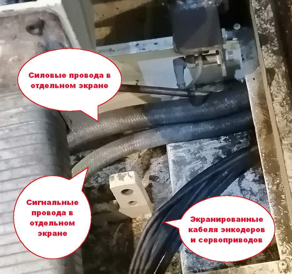Цепи которые критичны к наводкам внутри шкафа тоже проложены экранированными кабелями.