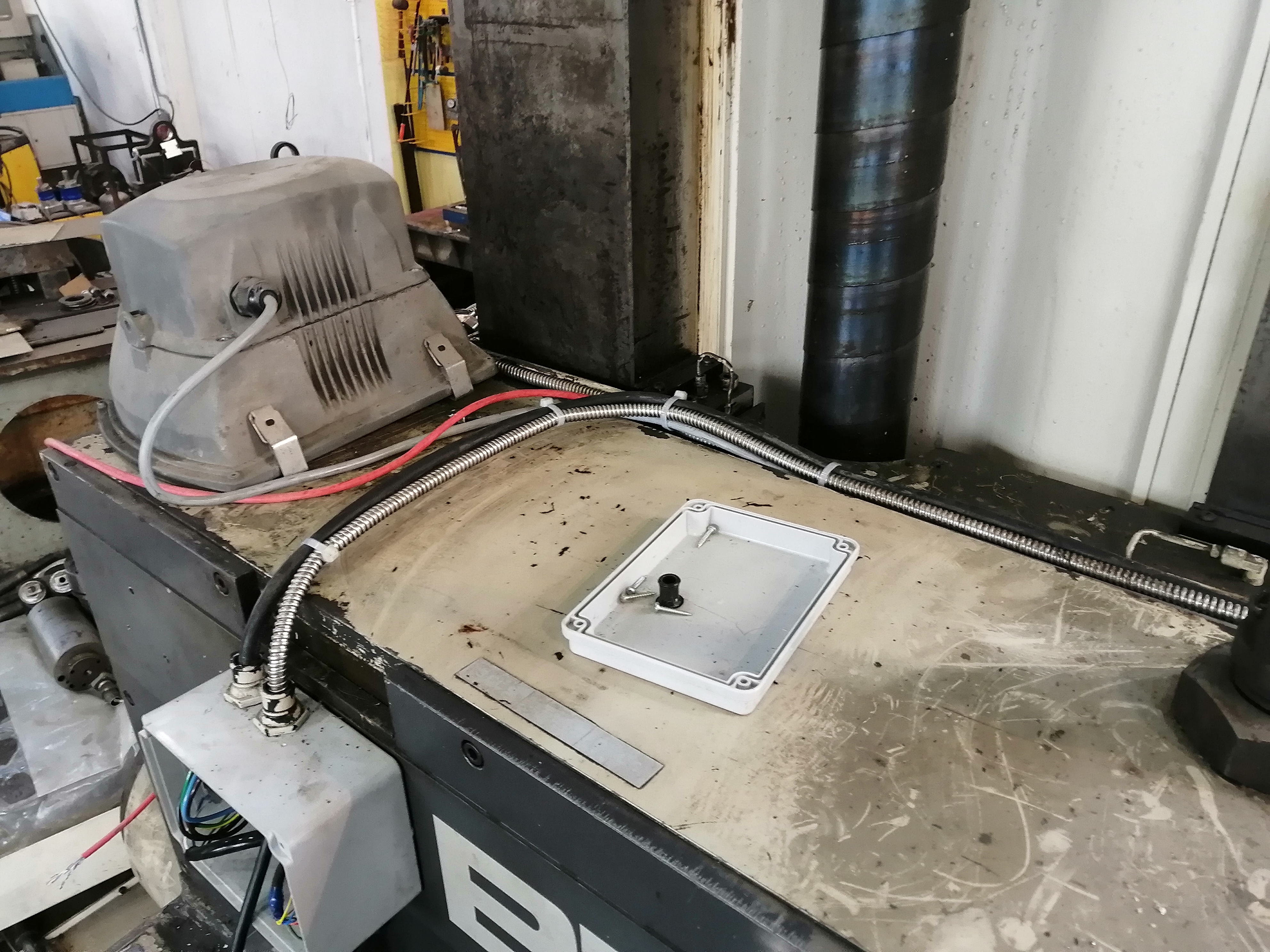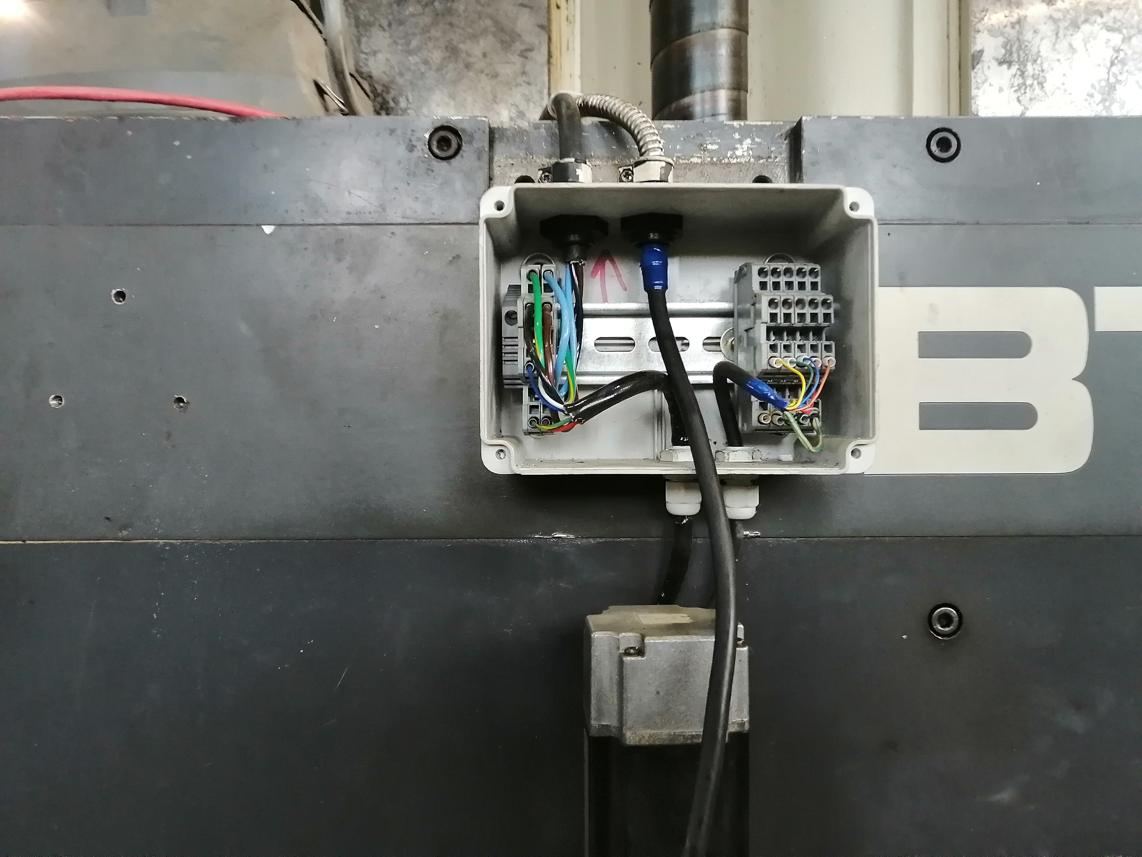 Эта коробочка промежуточная, сюда заходит кабель 20*1,5 из коробочки которую я описал выше ну и собираются концевики "Hard Limit" и "Soft Limit" оси "Z", концевики "Hard Limit" и "Soft Limit" подвижной колонны, пневмо клапаны тормозов и прочая лабуда типа конвеера стружки, насосов смазки направляющих и всякого прочего что ездит на столе. Из этой коробченки все собранные сигналы идут в электрошкаф.