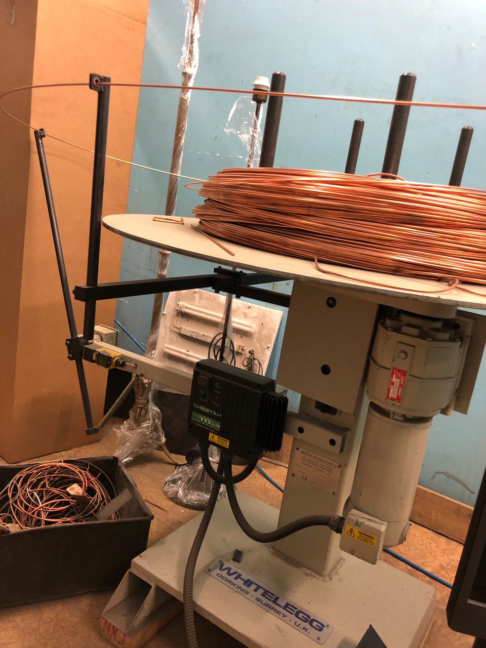 Работает с проволокой 2-4 мм. Мы используем стальную омеднённую. Но можно и обычную. Главный принцип при выборе проволоки производитель станка описывает так: из бухты проволоки нужно отрезать 4-5 витков и кинуть их на пол. Если вся проволока лежит на полу, то это подходящий материал. Если же она приподнимается от полка (за счёт витков), то не подходит.