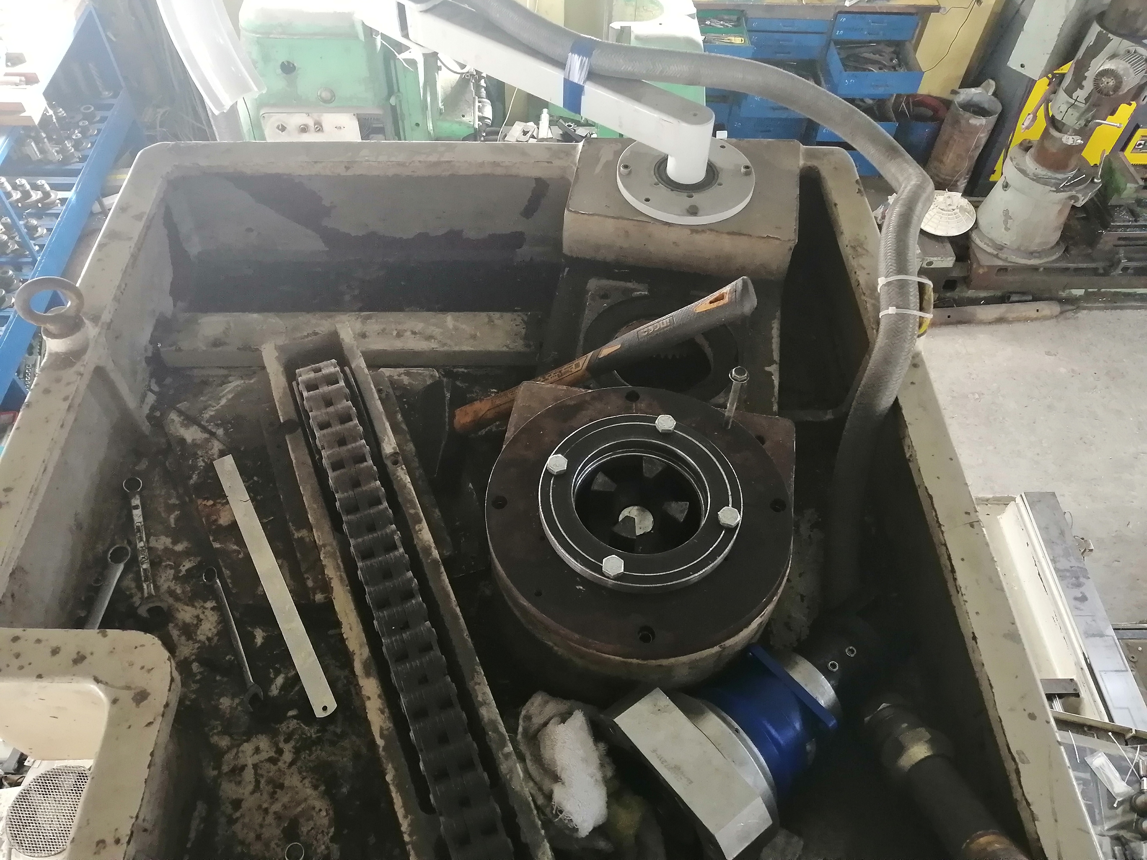 Сегодня наконец-то мне дали попользоваться фрезером. Взял расточные головки, чугуняку от "Тошибы" весом в 70кг и поехал грызть металл.