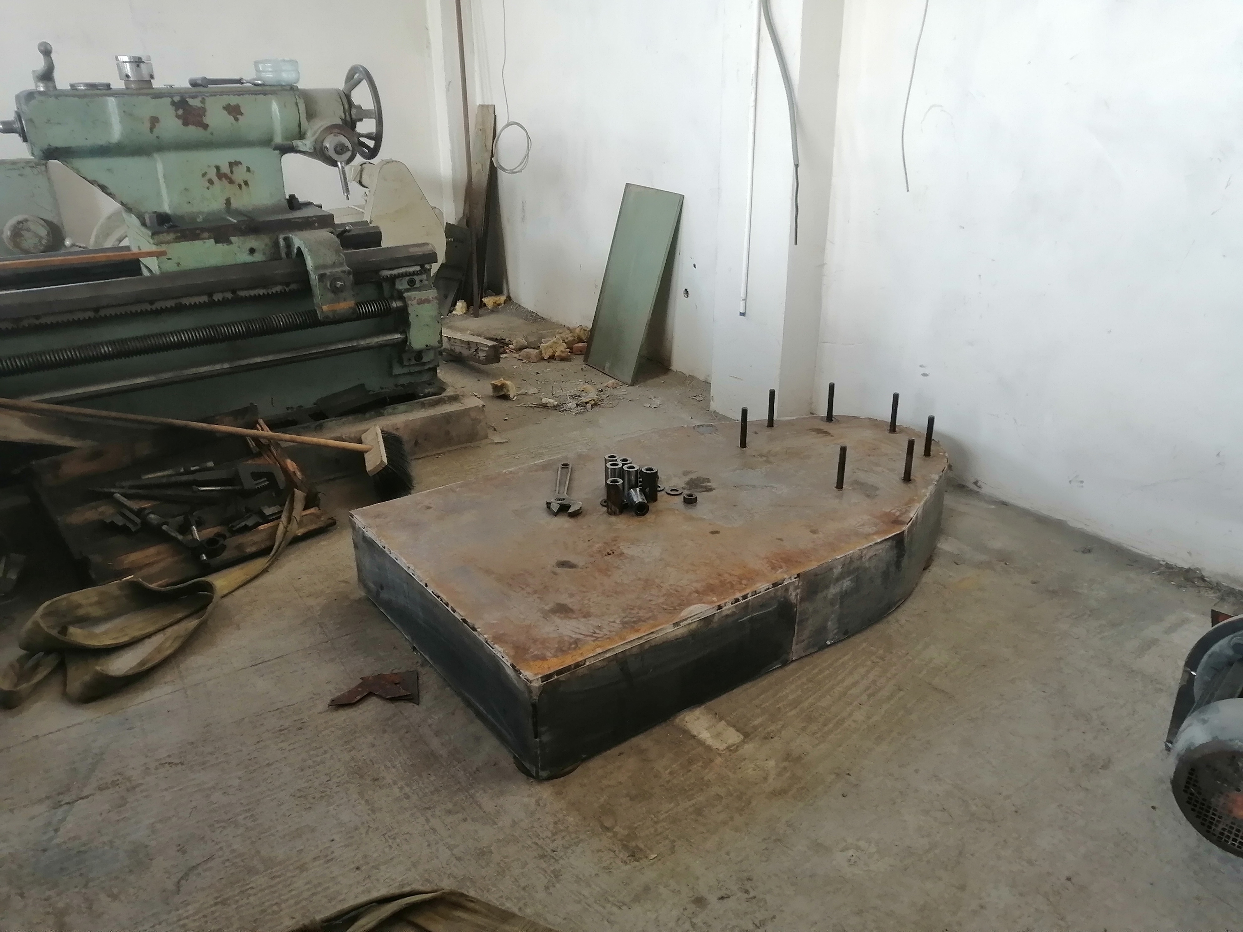 Параллельно изготавливается плита для сверлилки, а то этот её "агрегатный стол" Очень много места занимает. Решили сделать заливную станину.
