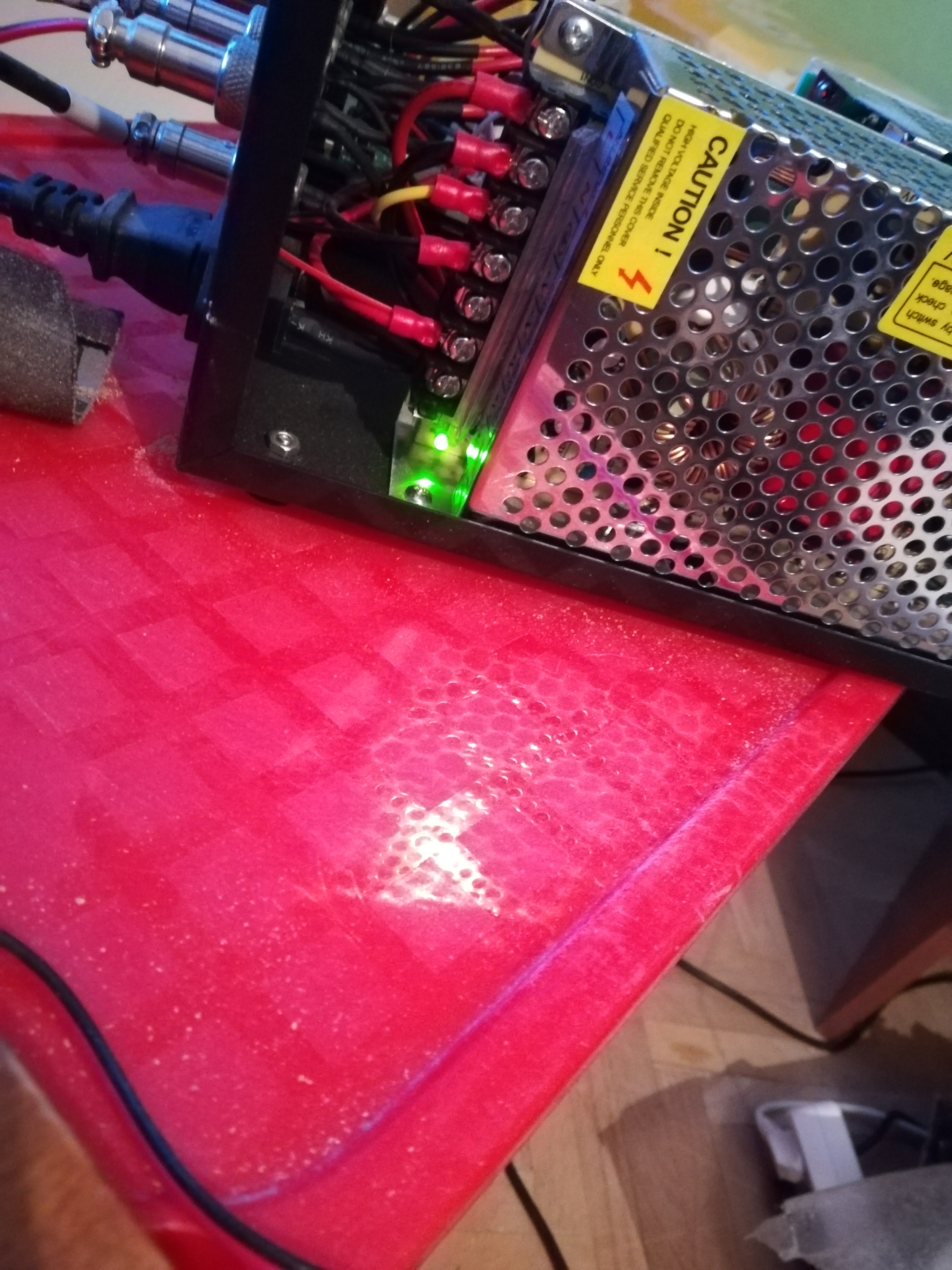 Он работал нормально раньше при глубине 0,5-0,6. Потом я попробовал гравировать на глубину 1,2 мм. После этого и произошло падение оси z. Когда я это заметил, то просто остановил программу, выключил станок и вручную поднял шпиндель. Может быть, действительно какой-то проводок отпал. Хотя, снаружи визуально все провода на месте.