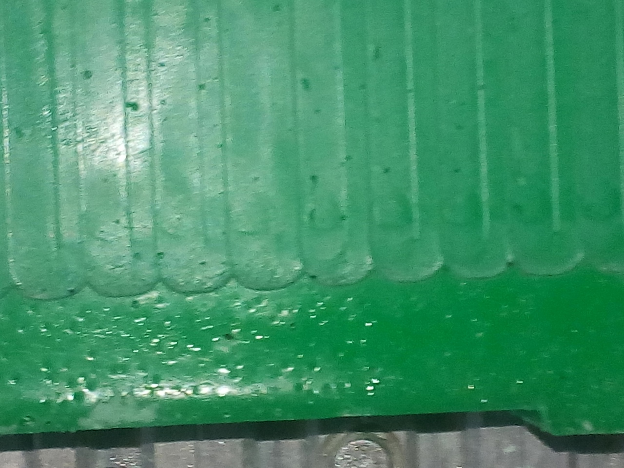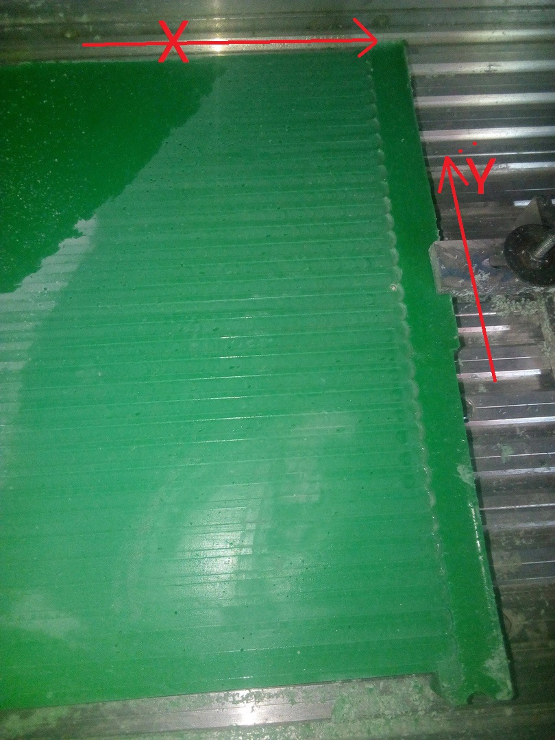 Здравствуйте уважаемые форумчане. Подарили станок начал выравнивать площадку получается вот такая бяка. Материал полиэфирная смола фреза 6мм шаг 4мм съем 1мм. Подскажите что может быть? на фотографии видно что получается.