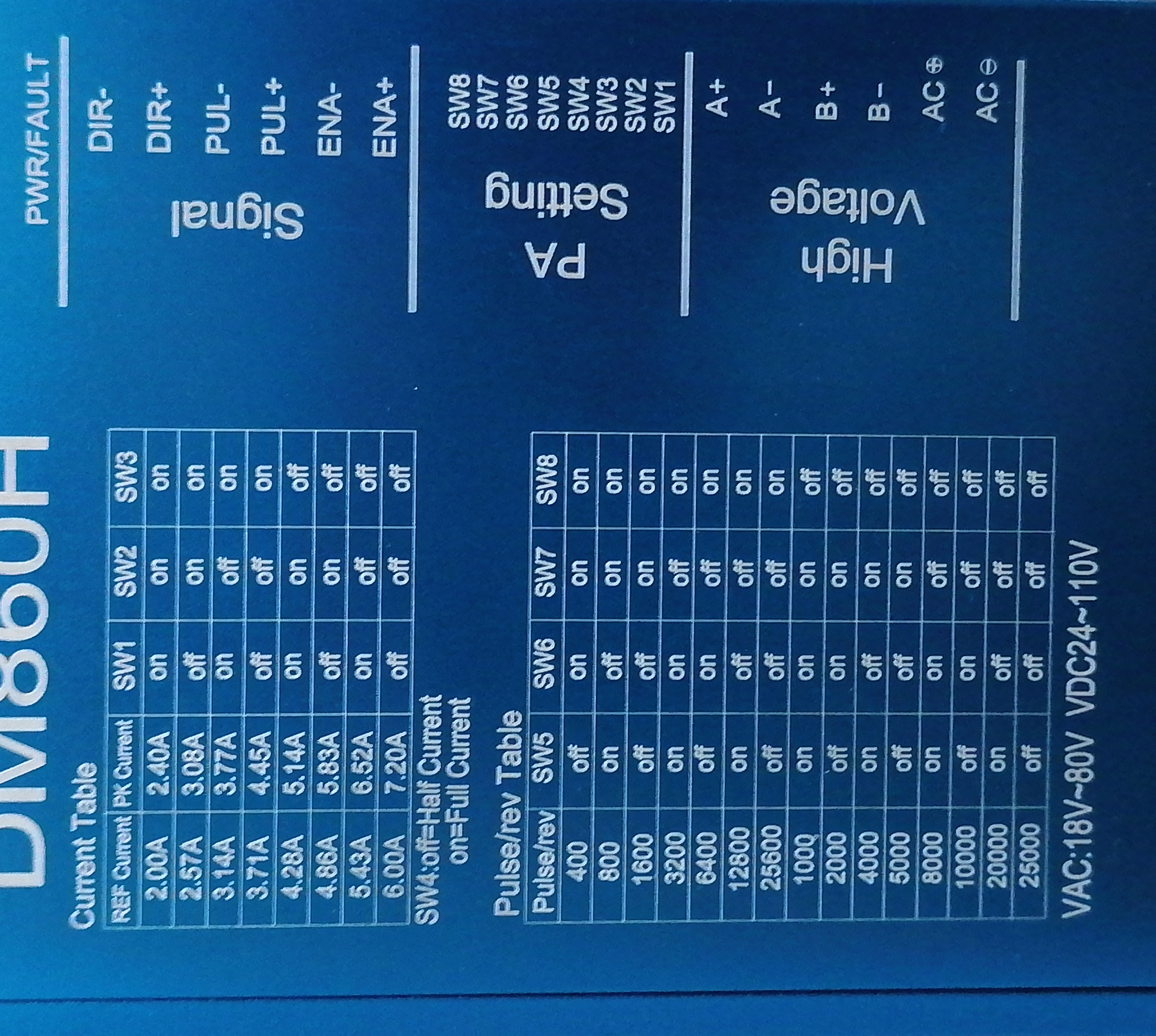 Получается, я выставил микрошаг 1/8,а по факту получился 1/25 где 5000 на оборот и соответственно 1000 на мм хода. Но как я не крутил схему включения флажков(если представить, что да это нет и читать надо с права на лево) никак не получается перепутать. Тогда можно методом тыка подобрать настройки микрошага, долго но делать нечего! Вопрос! Можно как-то замерить микрошаг выдаваемый драйвером(может драйвера кривые или ещё что)?