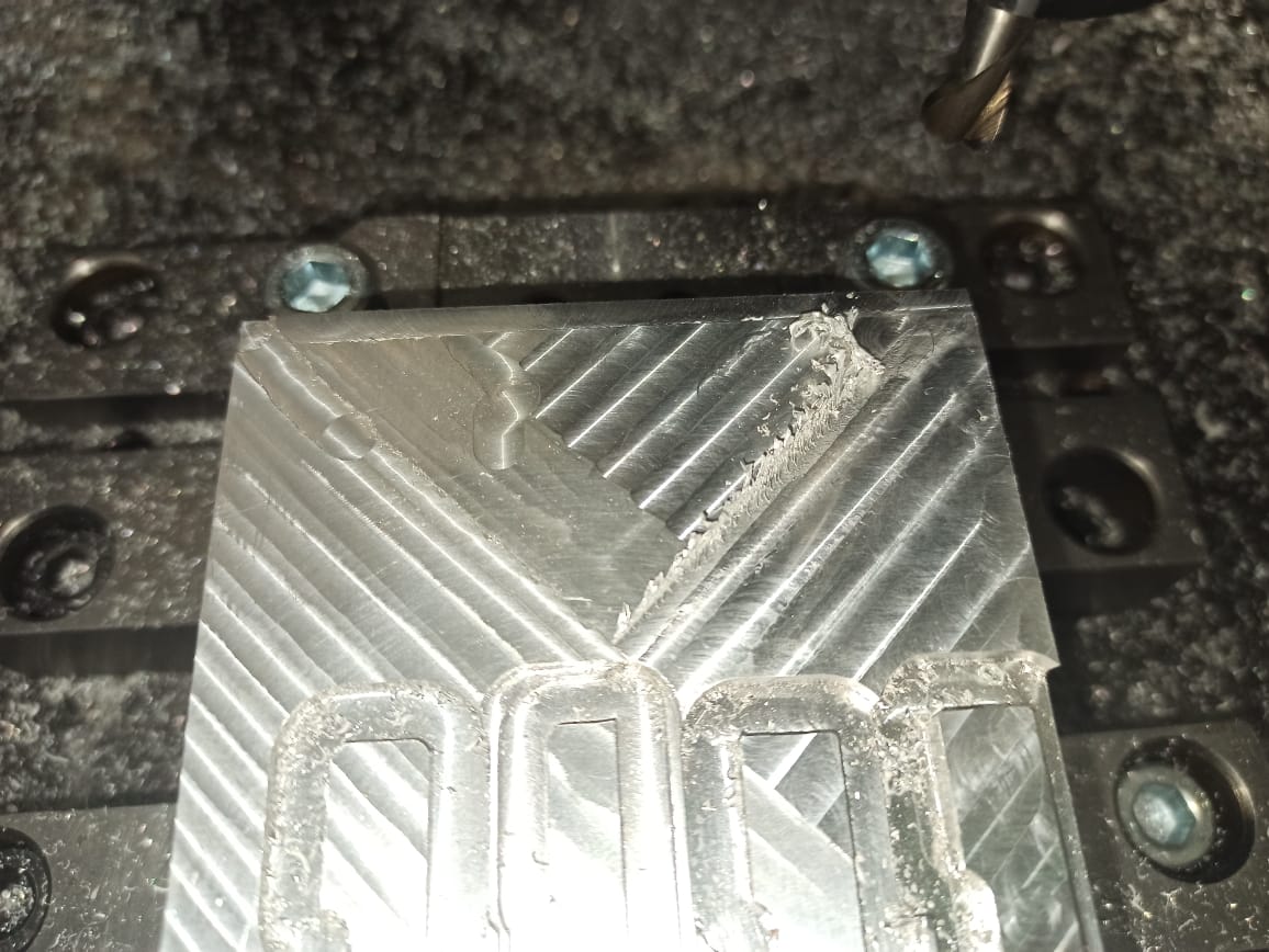 Потренеровался в выходные, выпилил пять держателей осей для RC машинки из них 4 шт. против часовой стрелки фреза шла и пятую поэксперементировал и попробовал по часовой стрелке, та которую пилил по часовой стрелке не понравилось как выглядят края (в бахроме получились). Ещё попробовал кое какую детальку выпилить на этой же заготовке но прекратил так как оказалось у меня станок фрезерует зеркально наоброт :) и фреза длинее нужна и деталь я оказывается во фрикаде неправильно нарисовал (в одном месте) вобщем станок мне сказал - я не виноват, я всего лишь фрезерую то что ты мне нарисовал :). А ещё разжился какими не какими тисками.