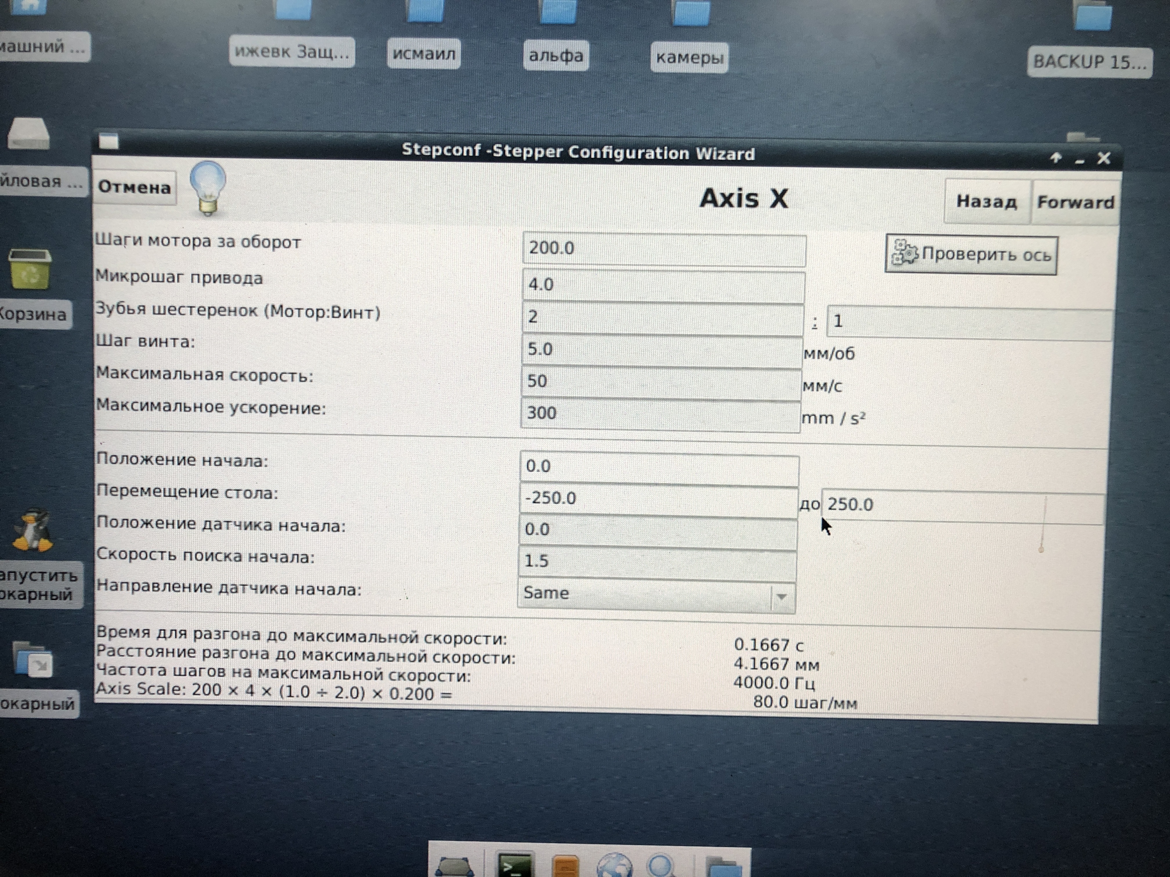 Интересный момент возник сейчас... у меня получилось ускорить скорость ... тут есть кнопка «проверить ось» я ей пользовался и она мне не давала выставить максимальную скорость выше каких то маленьких значений, а теперь я выставил прямо в полях как на картинке, и когда захожу на «проверку оси» значение максимальной скорости увеличивается... теперь настройки все верные и ездит 23мм/сек.. видимо ещё потестить придётся )))