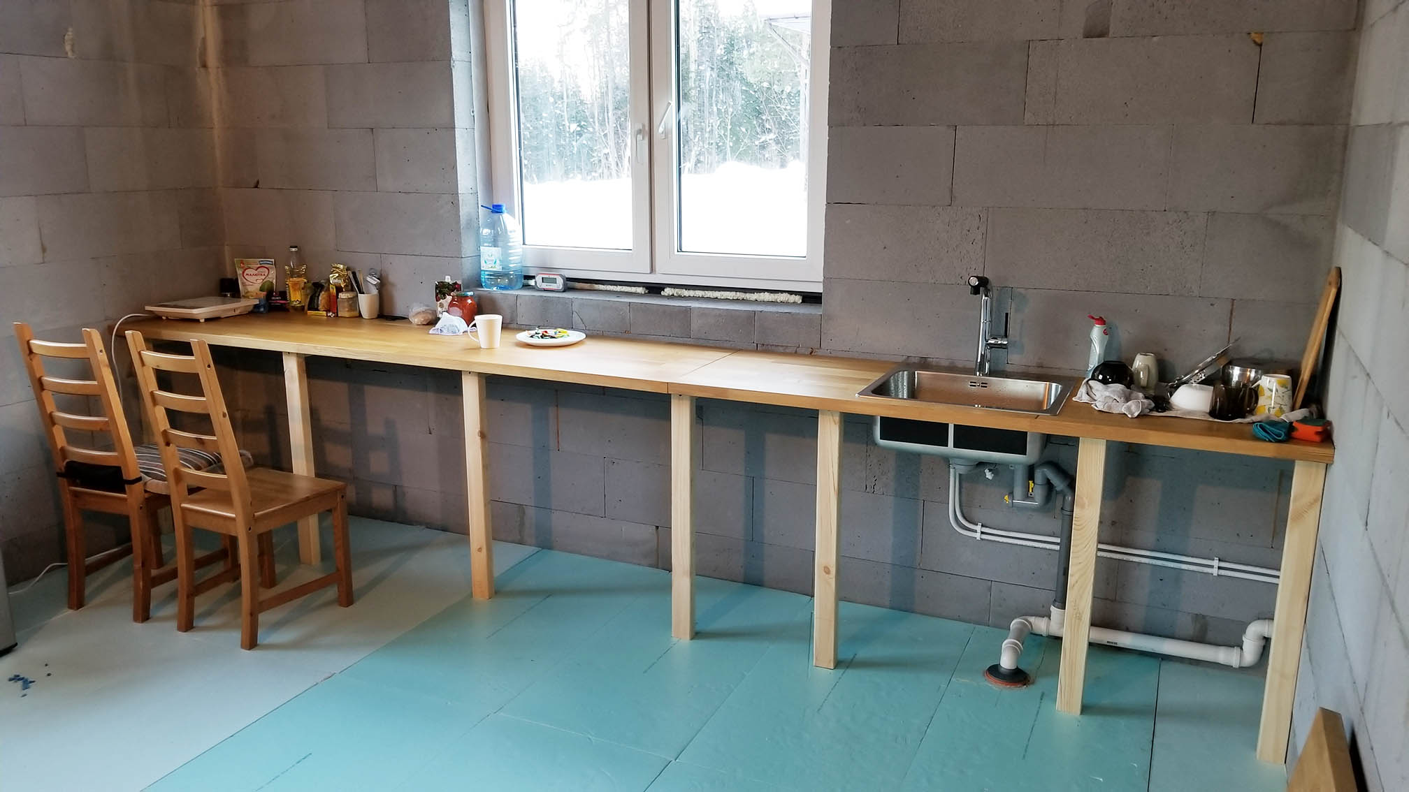 Без отопления вода все же замерзла: К счастью, через пару дней наконец-то подключили электричество. С электричеством и теплой водой стало возможно строить и зимой.michael-yurov писал(а): ↑ Продолжение попозже выложу.