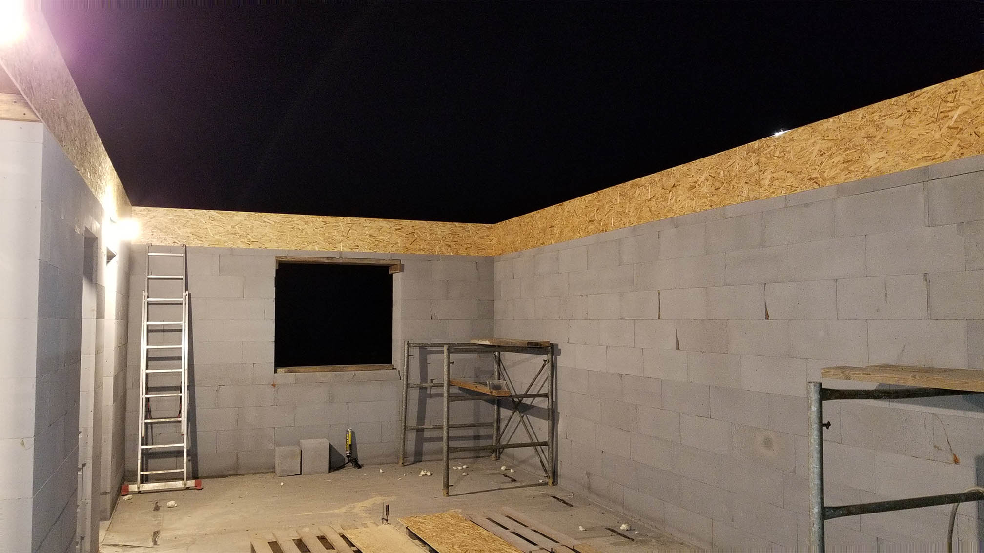 Проблемы зимой были только с тем, что 50% времени я тратил на уборку снега. И очень сложно было разделить смерзшиеся в единую глыбу блоки, сильно промокшие под осенними дождями. Один из поддонов отогревал двое суток, чтобы разделить.