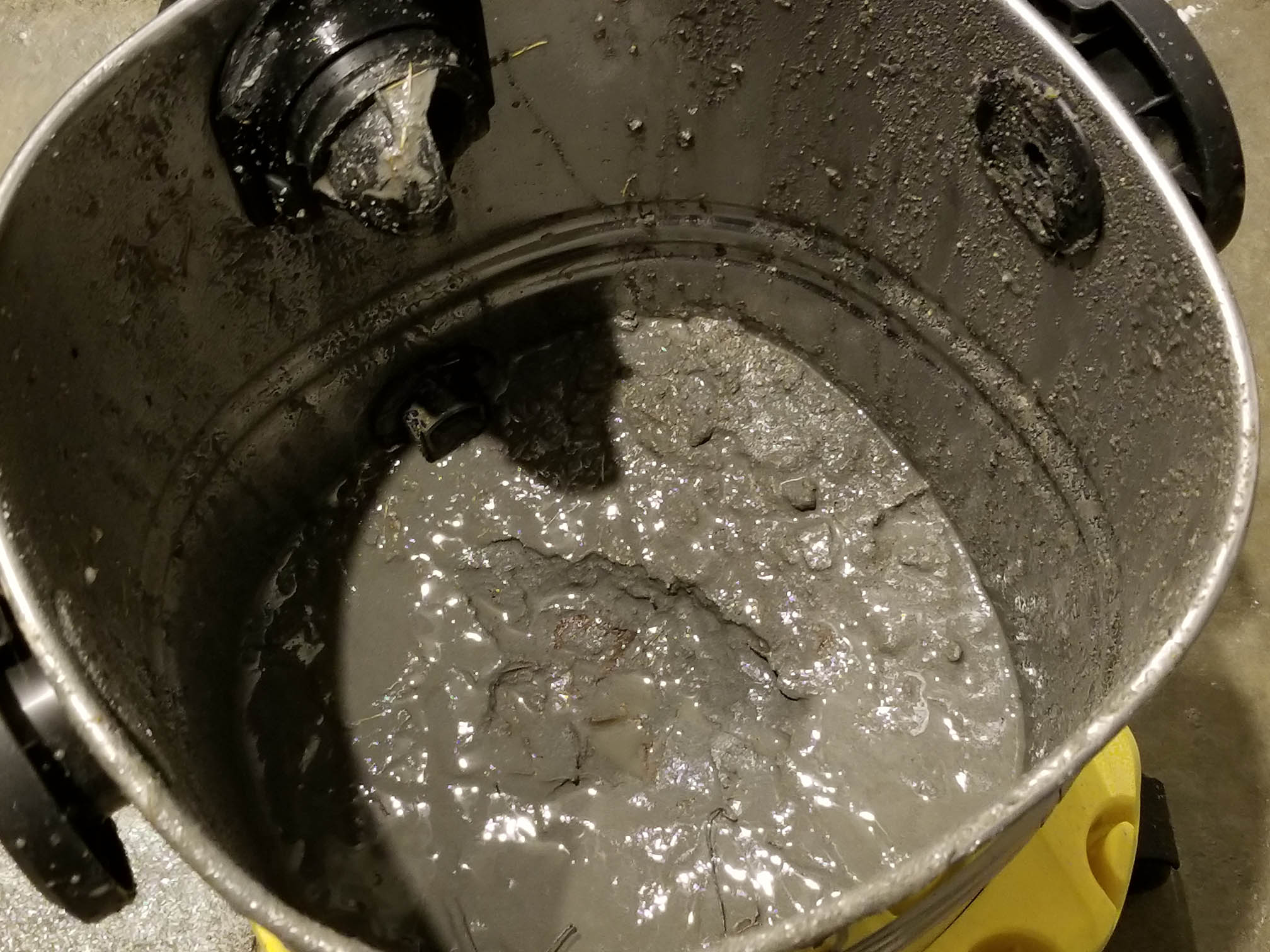 Очень помогает в работе строительный пылесос. Собирает и воду и снег и лед и грязь: