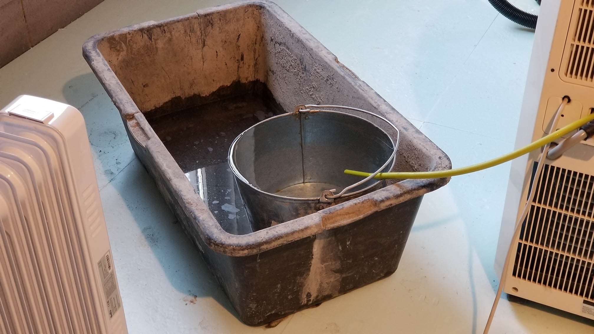 Оставил с ведром на ночь. Утром прихожу, и вижу, что ведра хватило впритык: