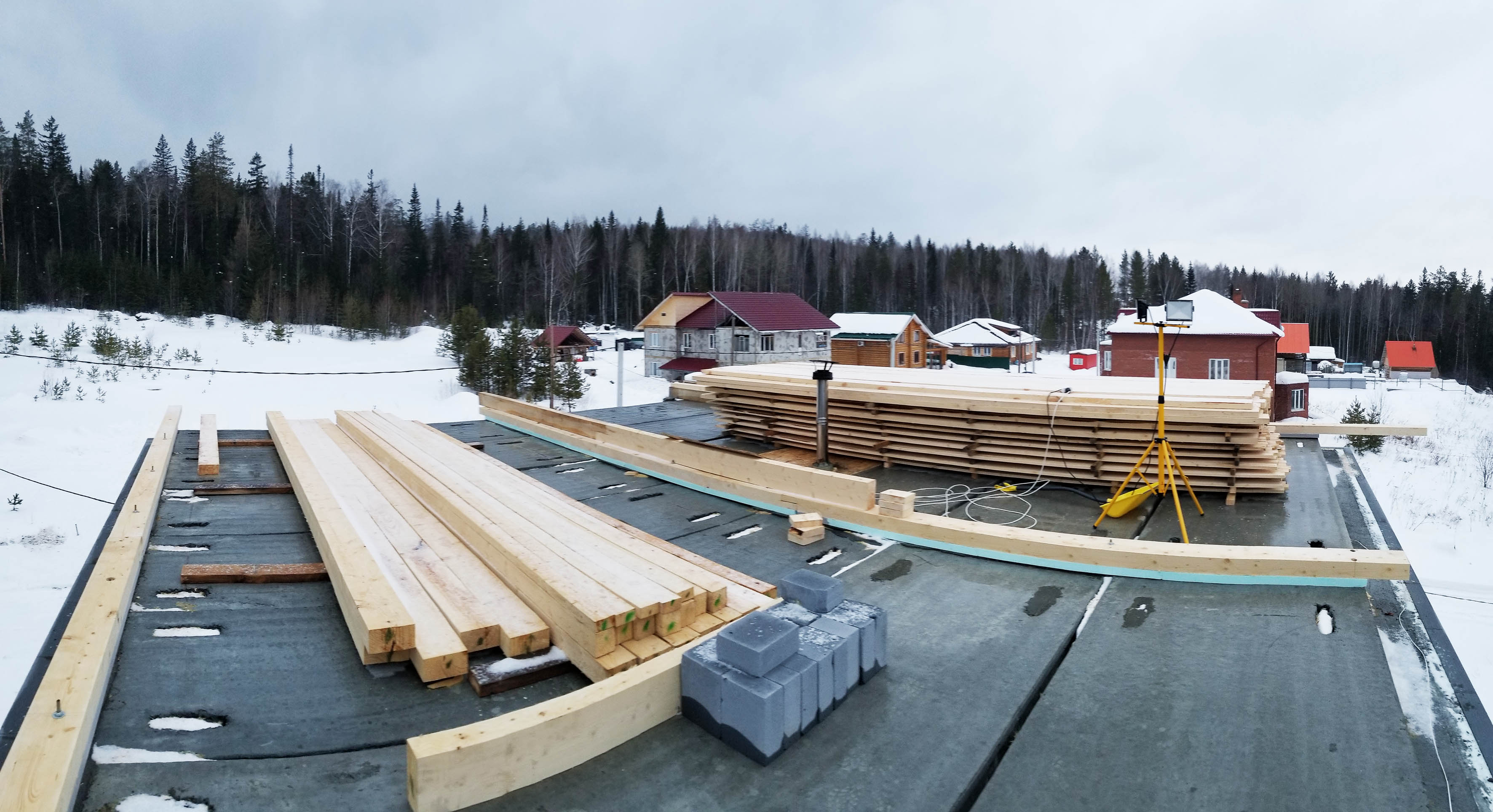 Под новый год удалось договориться с краном, чтобы уложить плиты. Но он так и не приехал. Не завелся в −35°C.