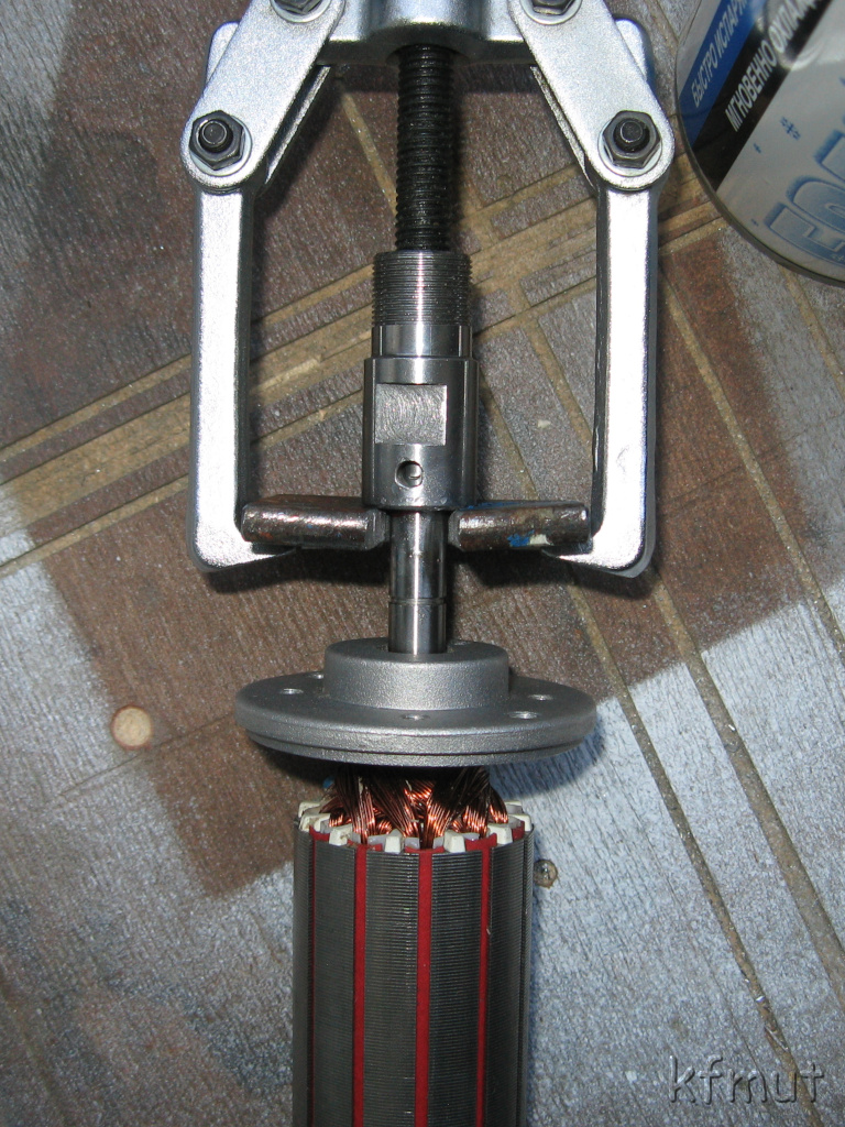Я снимал патрон на токарном станке, потратил всего одну пластинку. До этого сломал правда 2 съемника. Но двигатель пока так назад тот и не собрал - спереди что-то вроде 7000 подшипника решил поставить, все никак не дойду новую крышку нижнюю сделать и переходную втулку на вал.