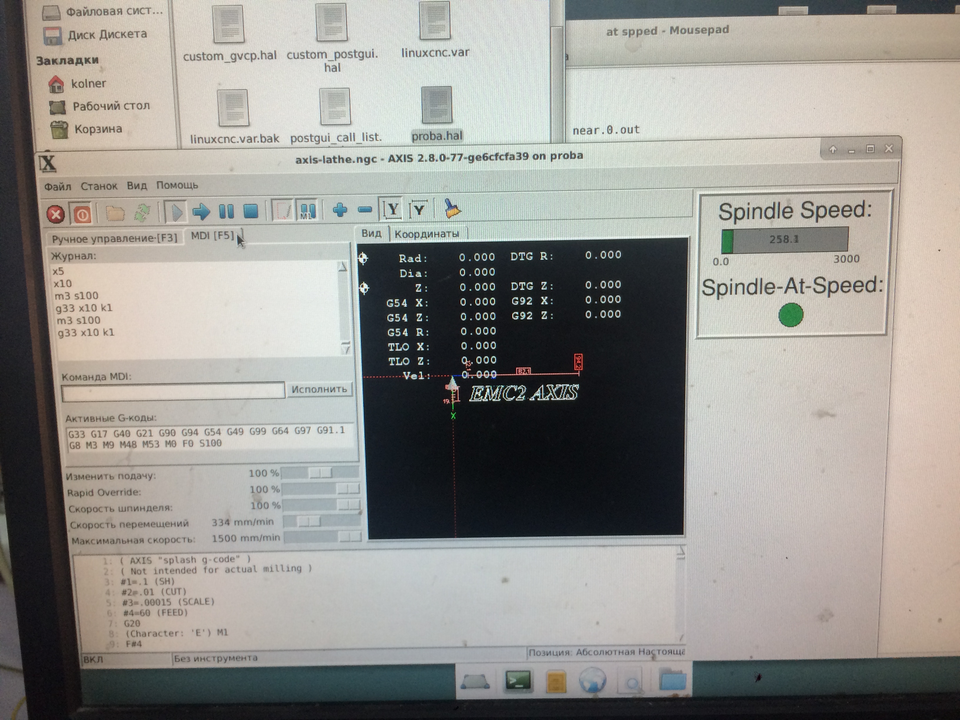Такой вопрос. Мануал буду изучать, но все равно спрошу. В базе g33 на токарном не хочет работать. У меня конфигурация с pcnconfig. Галочку spindel at speed поставил-ничего не дало.