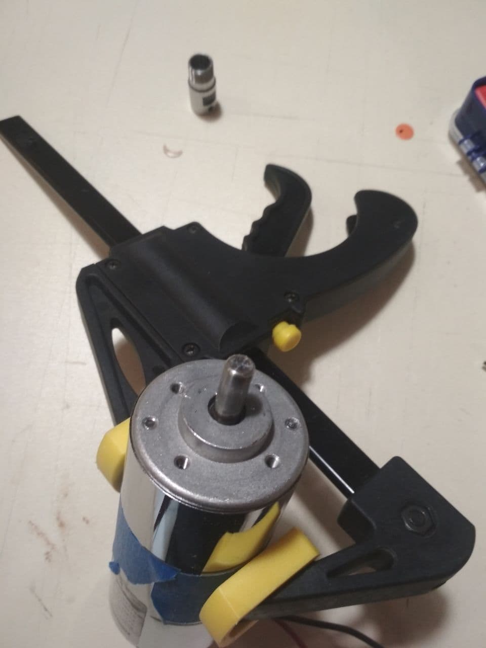 для замены щеток или когда обороты падали, поскольку щеткодержатель там сделан из какойто хрутсальной пластмассы, нужно быть аккуратным. верхний подшипник на валу вверх вниз можно было рукой двигать без больших усилий :eh: , люфты присутствуют, резиновые "шайбочки " тоже не добавляют точности.