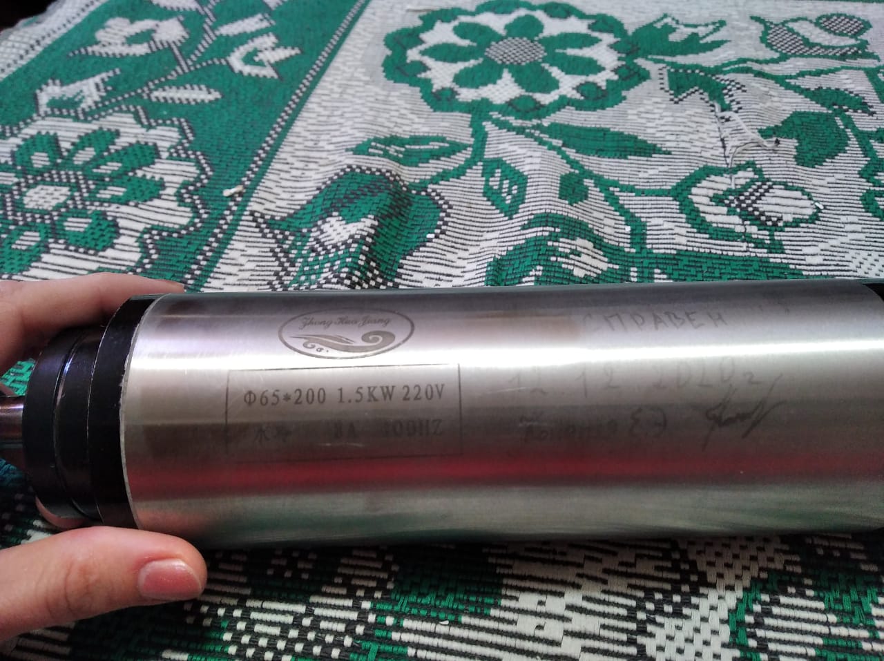 Добрый день. У меня интересная ситуация. Я ещё в прошлом году приобрёл шпиндель с патроном ER11 диаметром 65 мм и мощностью 1.5 кВт. По своей неопытности (или рукожопости) немного его подпалил, я об этом событии писал на этом форуме. Я осознал свою ошибку и устранил проблему, всё заработало как по маслу (не смотря на то что шпиндель пустил дым с обмотки). Однако после пары дней работы этим шпинделем у меня дико завыли подшипники (люфт измерял индикатором примерно был 0.05 - 0.1 мм что очень много для меня) и шпиндель пришел в негодность практически новым... Вообщем я Китайцу написал о проблеме, он предложил чтобы я выслал ему шпиндель, а он вернёт деньги. На этом и порешали. В общем отправил я на родину этот шпиндель, деньги мне вернули, а сам заказал другой. Приехал мне другой шпиндель и не знал я горя до вчерашнего дня.