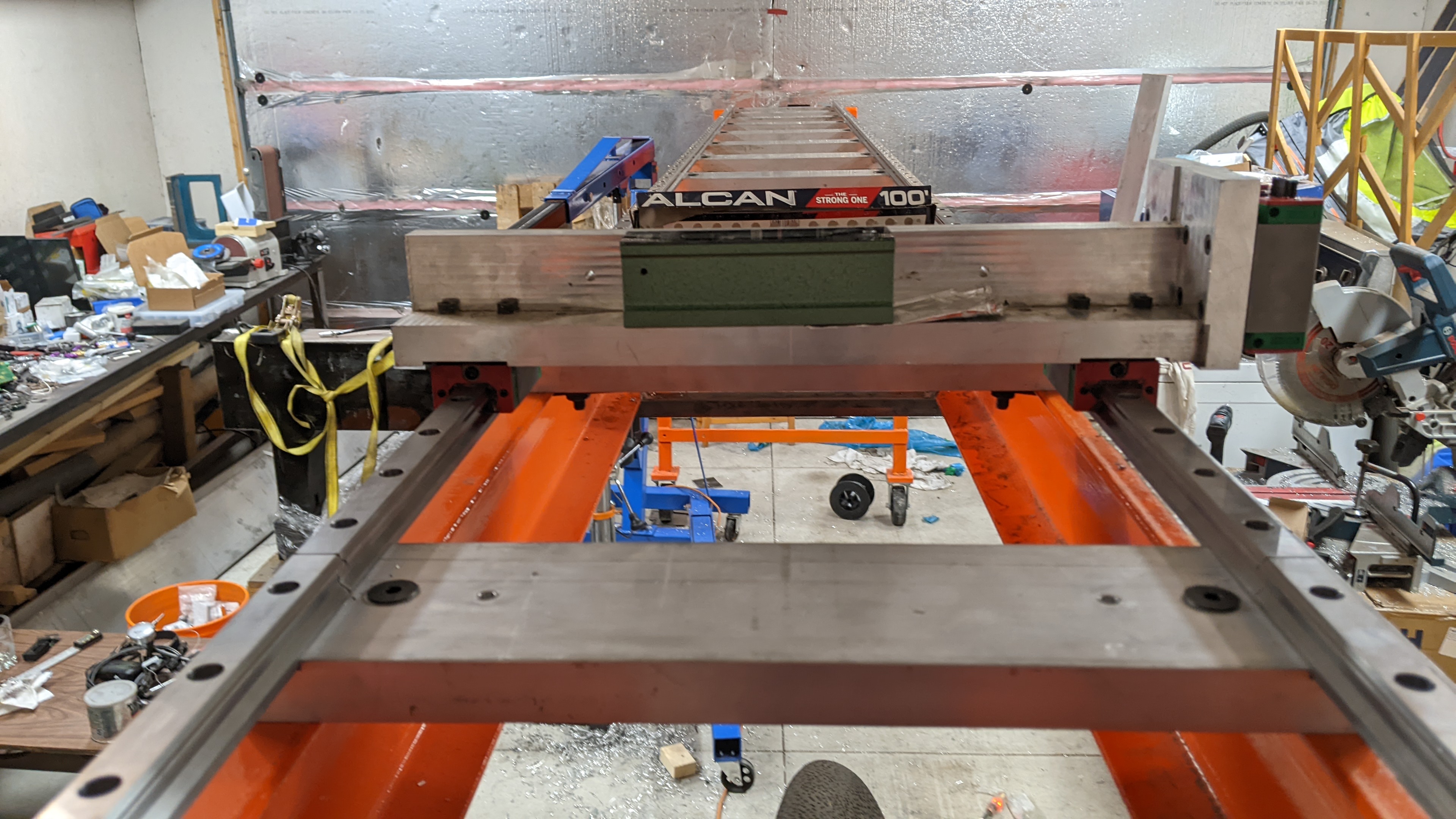Привезли портал станка: Приварил направляющие под рельсы hiwin: Теперь нужно как-то это все отфрезеровать. Начинаем собирать самодельную "установку":