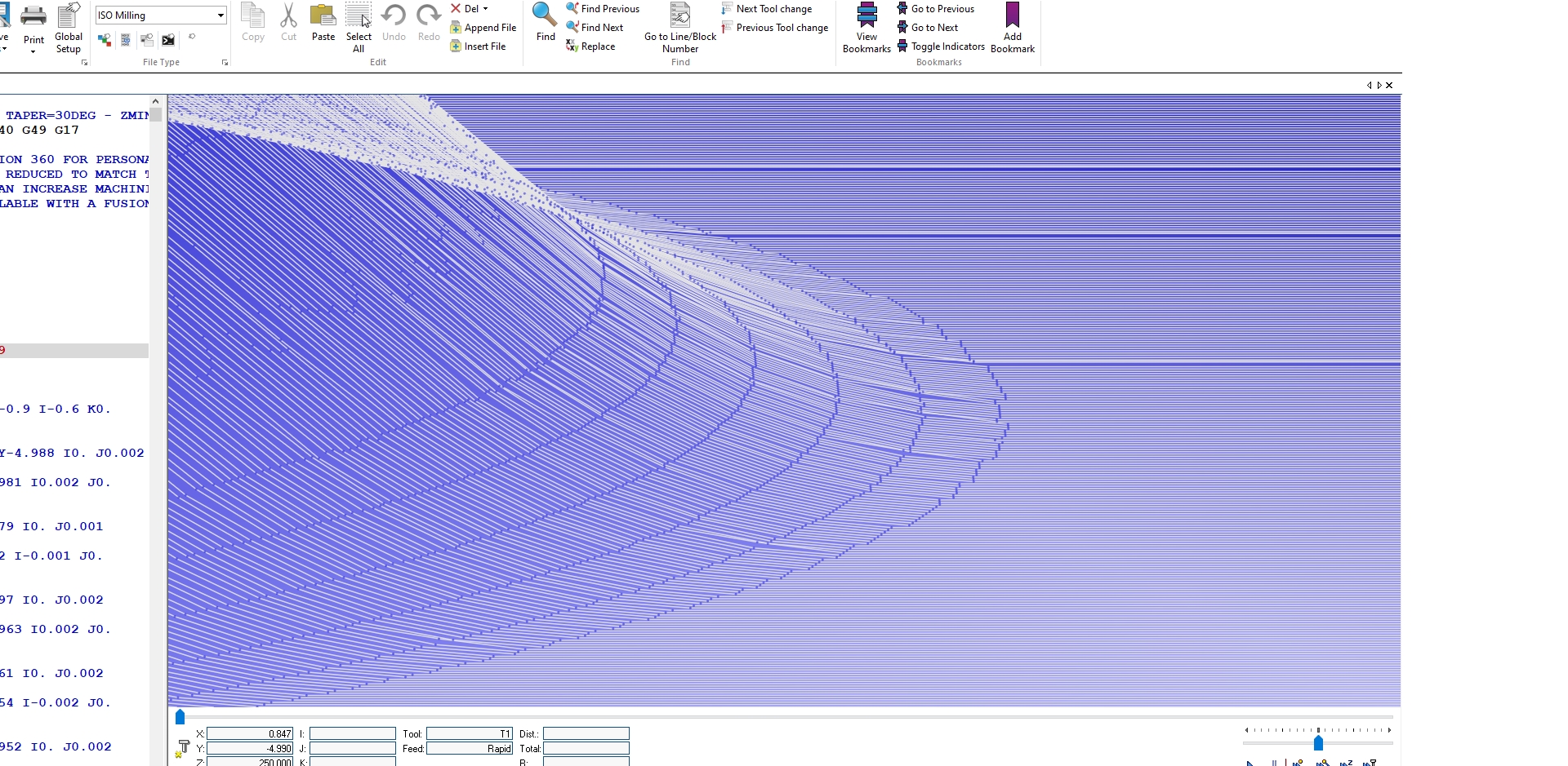 постпроцессоры гадят ?!...Фузя строит хорошую траекторию а они выдают странные зигзаги...в Симко Едит всё это увидел...в посте настраивал толеранс на максимум, всё равно гадит...оговорюсь, это при микронных значениях, шаг между проходами 3 микрона