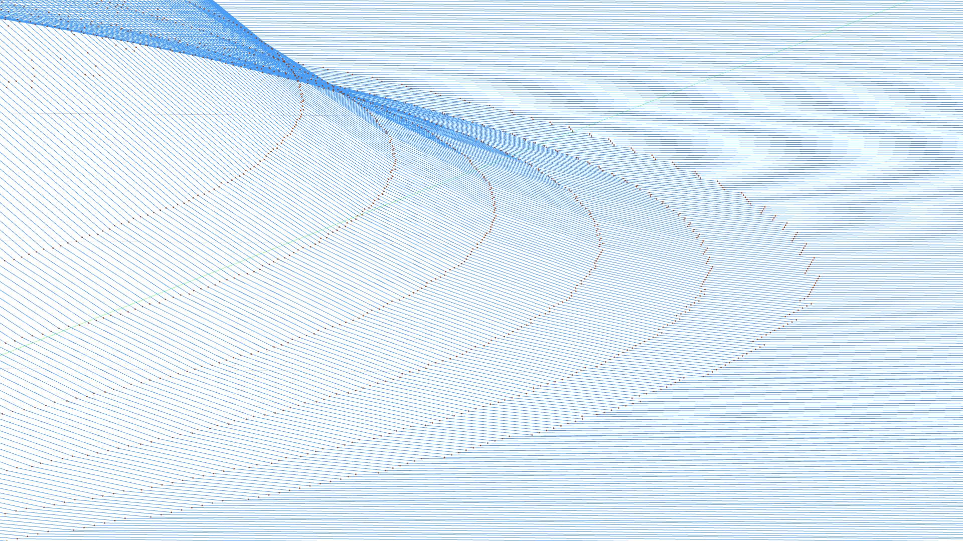 У вас там случаем не косяк с отображением, типа включенной перспективы? Судя по пикче у вас три знака после запятой в выхлопе, между проходами 3 микрона(зачем?), соответсвенно шум может быть размером только в целое число микрон, а на пикче деление больше, сами координаты бы посмотрели у соседних точек