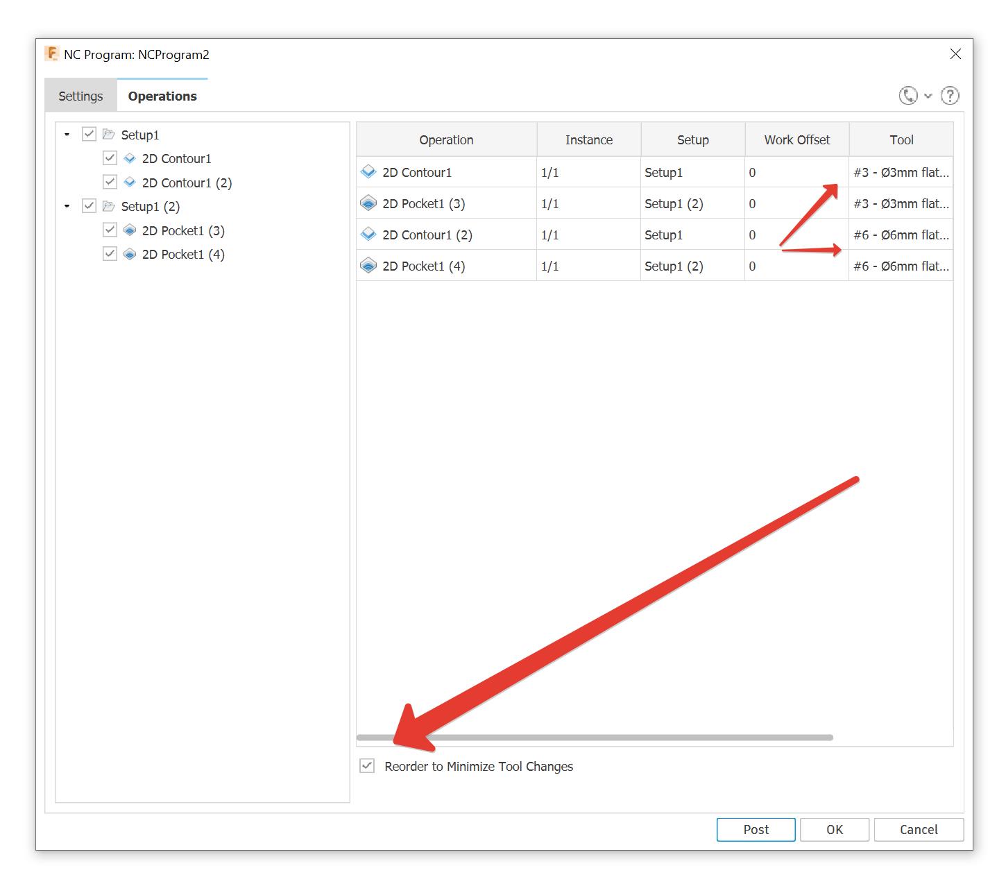 Парни подскажите где нажать, нужно в дереве CAM как то разделить траектории по инструменту + добавить отображение времени выполнения траектории
