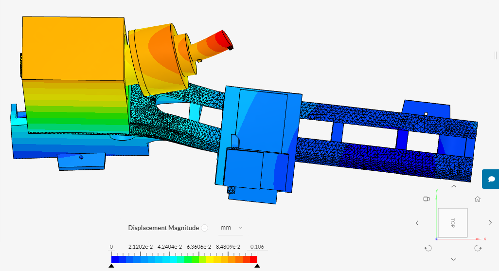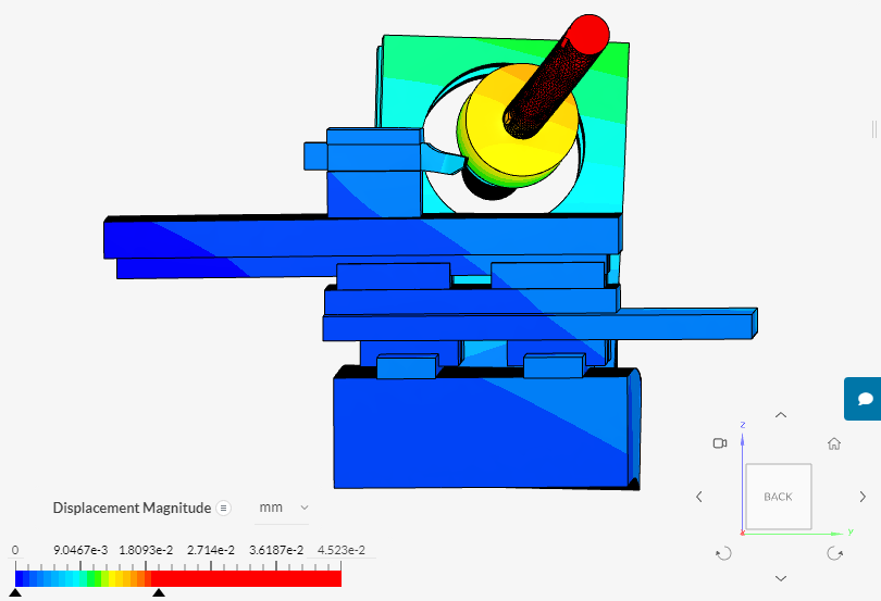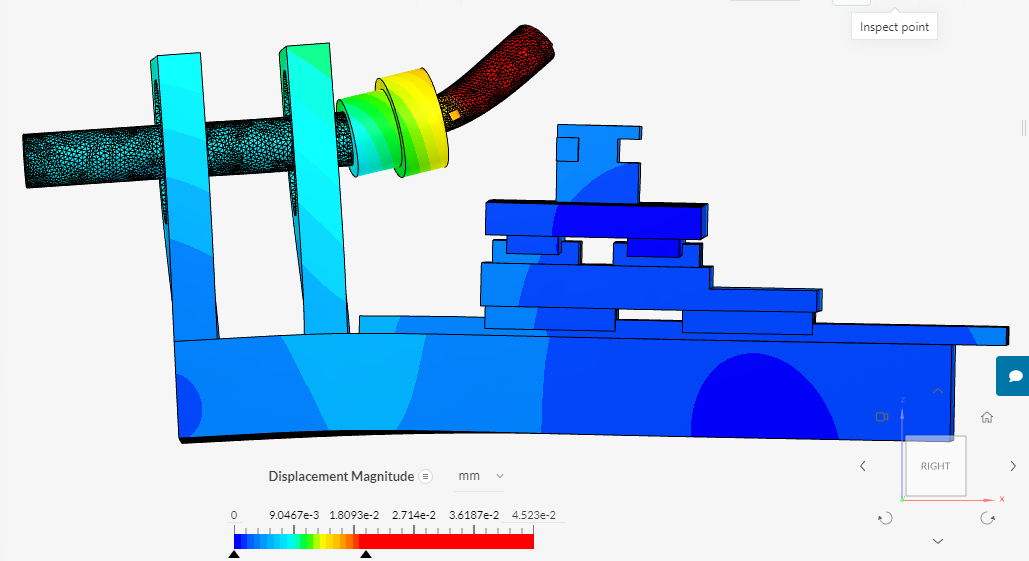 Сотки, на картинках масштаб задан для наглядности, цветом показана величина изменения положения узла в пространстве. Для правильной симуляции кареток, да, надо мне заметно подучиться, сейчас они просто "склеены" с рельсами :wik: