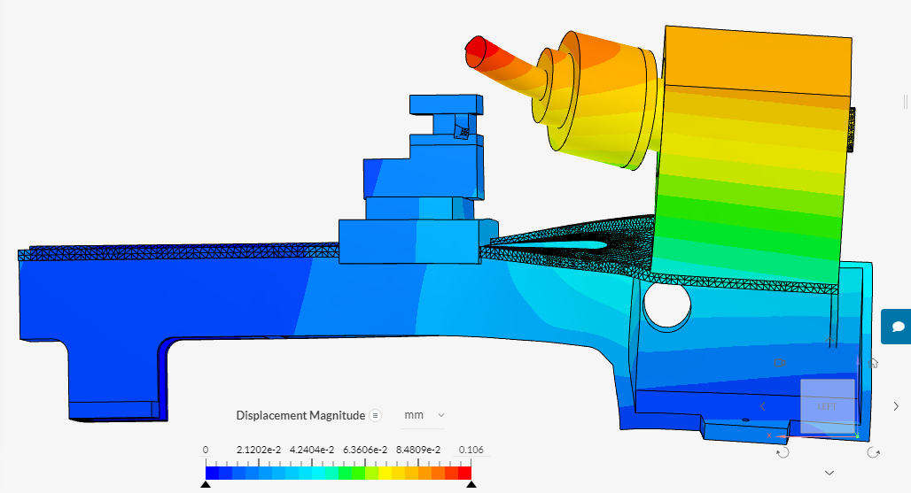 Сотки, на картинках масштаб задан для наглядности, цветом показана величина изменения положения узла в пространстве. Для правильной симуляции кареток, да, надо мне заметно подучиться, сейчас они просто "склеены" с рельсами :wik: