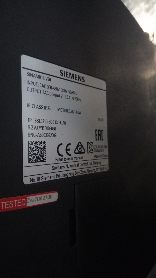 Драйвер sinamics V70 (MOTOR: 0.75/1.0kW).