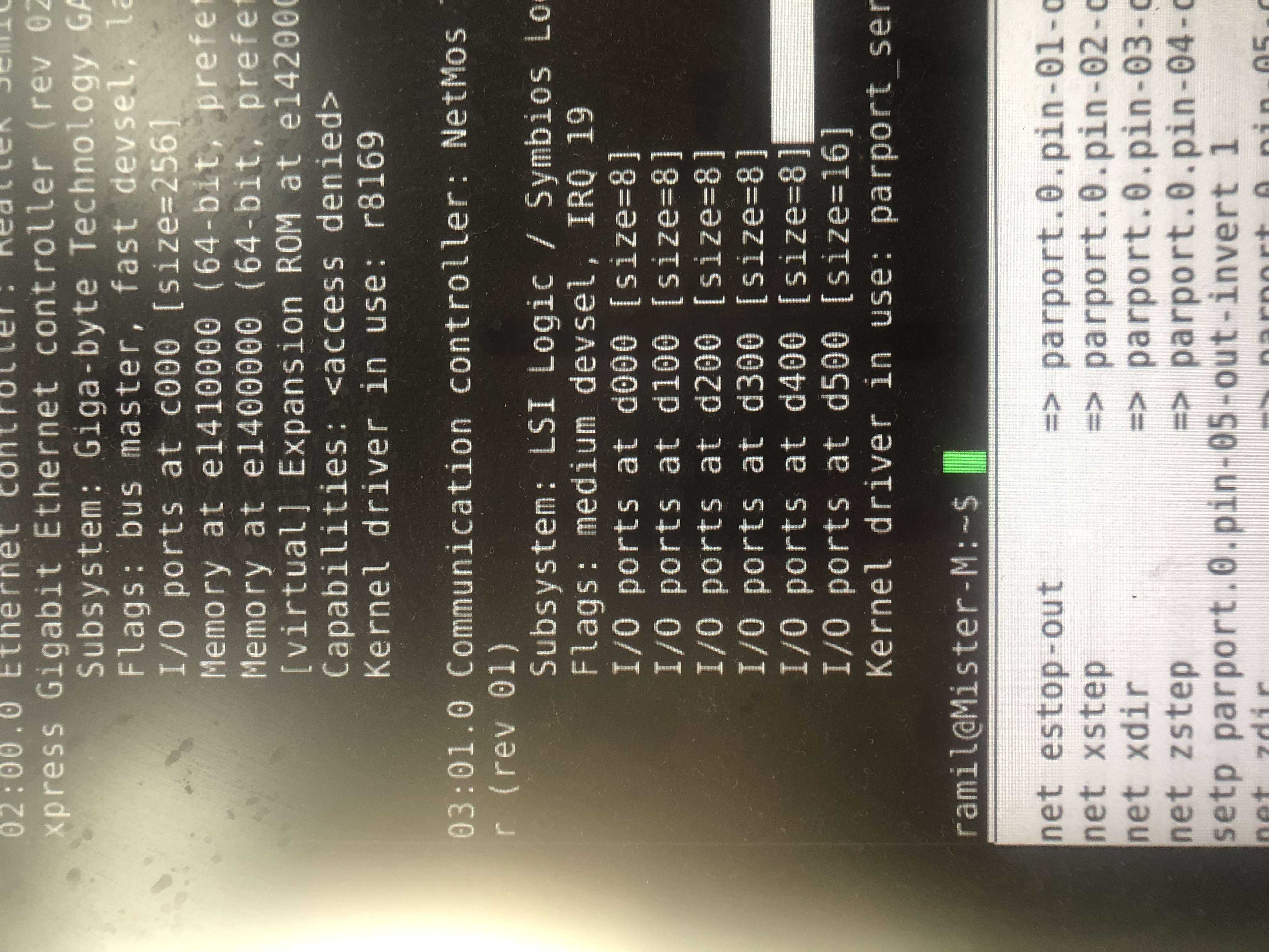 Не все карточки PCI-LPT работают. Мы покупали разные, и не все получилось запустить. Даже под виндой с Mach3 они не работали.
