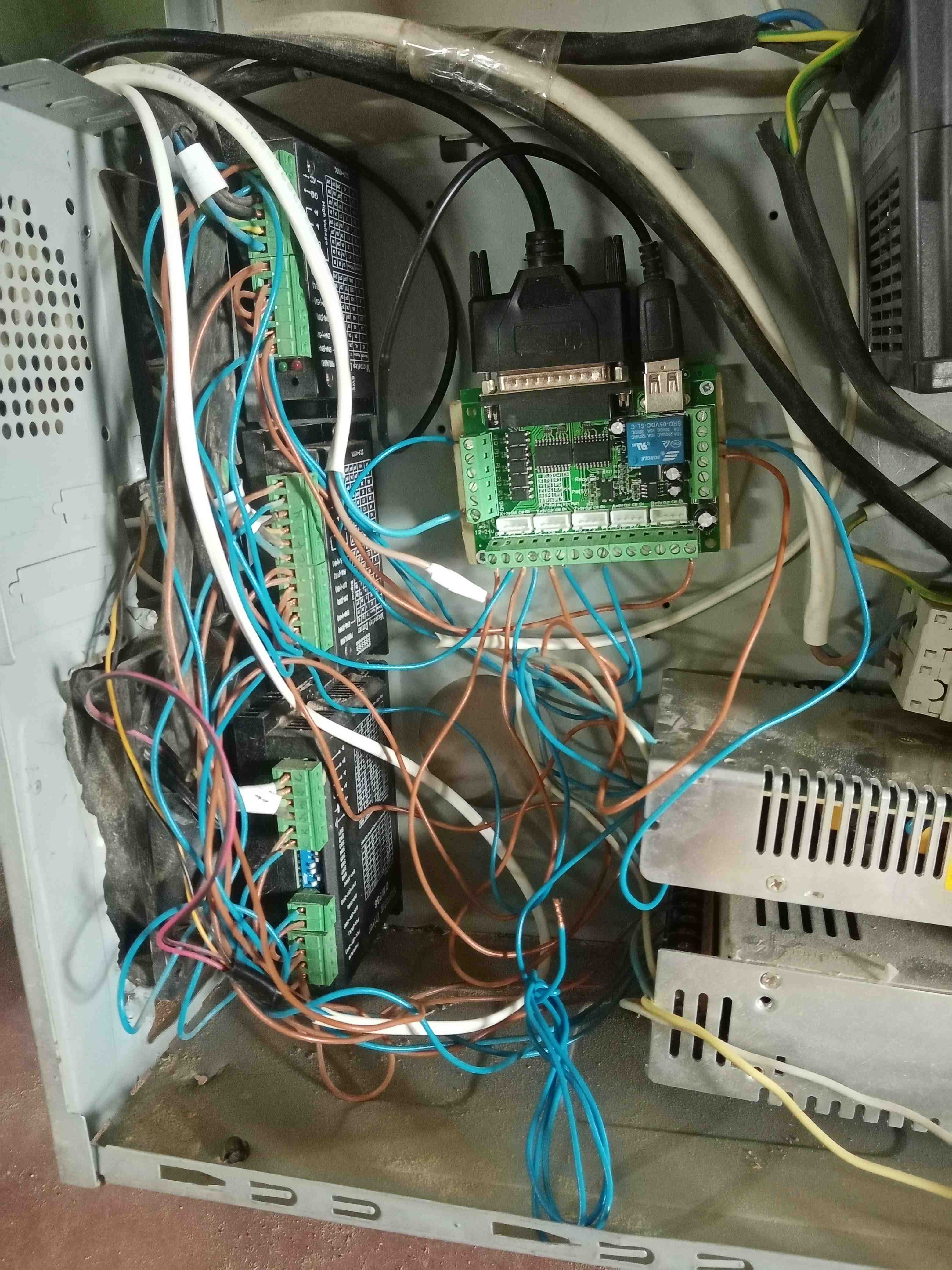 Думал, что причина либо в кабеле лпт, или сломался сам лпт порт на пк, или просто mach3 заглючил на пк и переустановить его нужно. Купил другой старый системник и установил mach3, сигналы в ручную стали передаваться, но через раз, то едет, то не едет. После закрепил плату обратно в ящик, станок заработал, начал отрабатывать по заданию, но он оказался лицензией на 500 шагов. Нашёл ломаную (у себя на ПК, не помню она или нет у меня до простоя стояла), установил и началось. При проверке в ручную сигналы клавишами отрабатывал на половину. Потом системник запищал и вышло сообщение: недостаточно питания порта лпт. Комп завис и не реагировал на нажатия после 10-15 минут, нажал перезапуск с кнопки, слетела винда. Съездил взял второй системник, установил эту же mach3 и все точно также повторилось (добавилось ещё то что при включение пк ось сама поехала, это нормально?), мало питания, завис и в итоге при включение пк запускается биос.