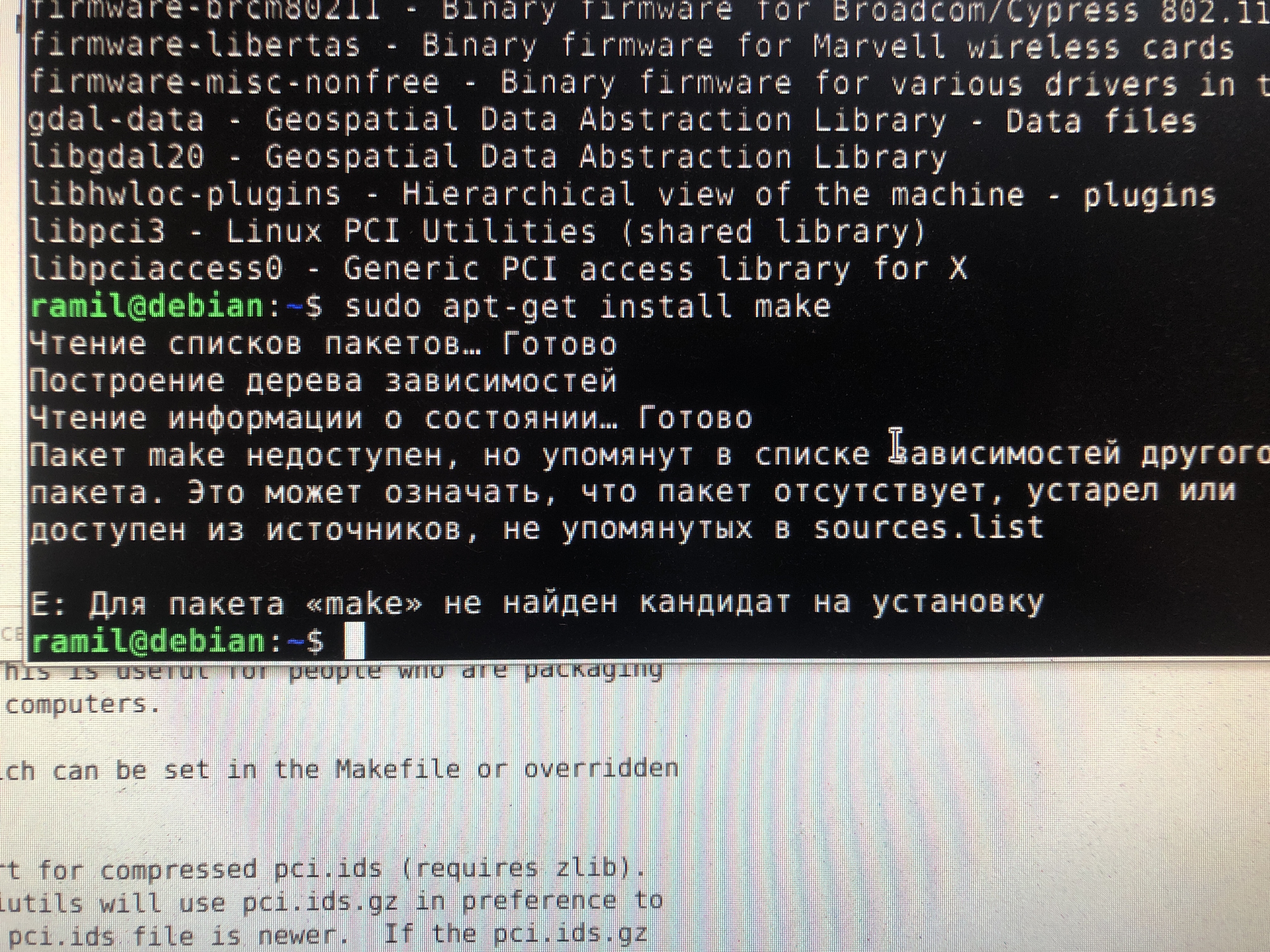 скачали из инета архив pciutils-3-7.0.tar.gz распаковали, теперь для установки.нужно использовать команду make , ее тоже не находит( пишет команда не найдена)