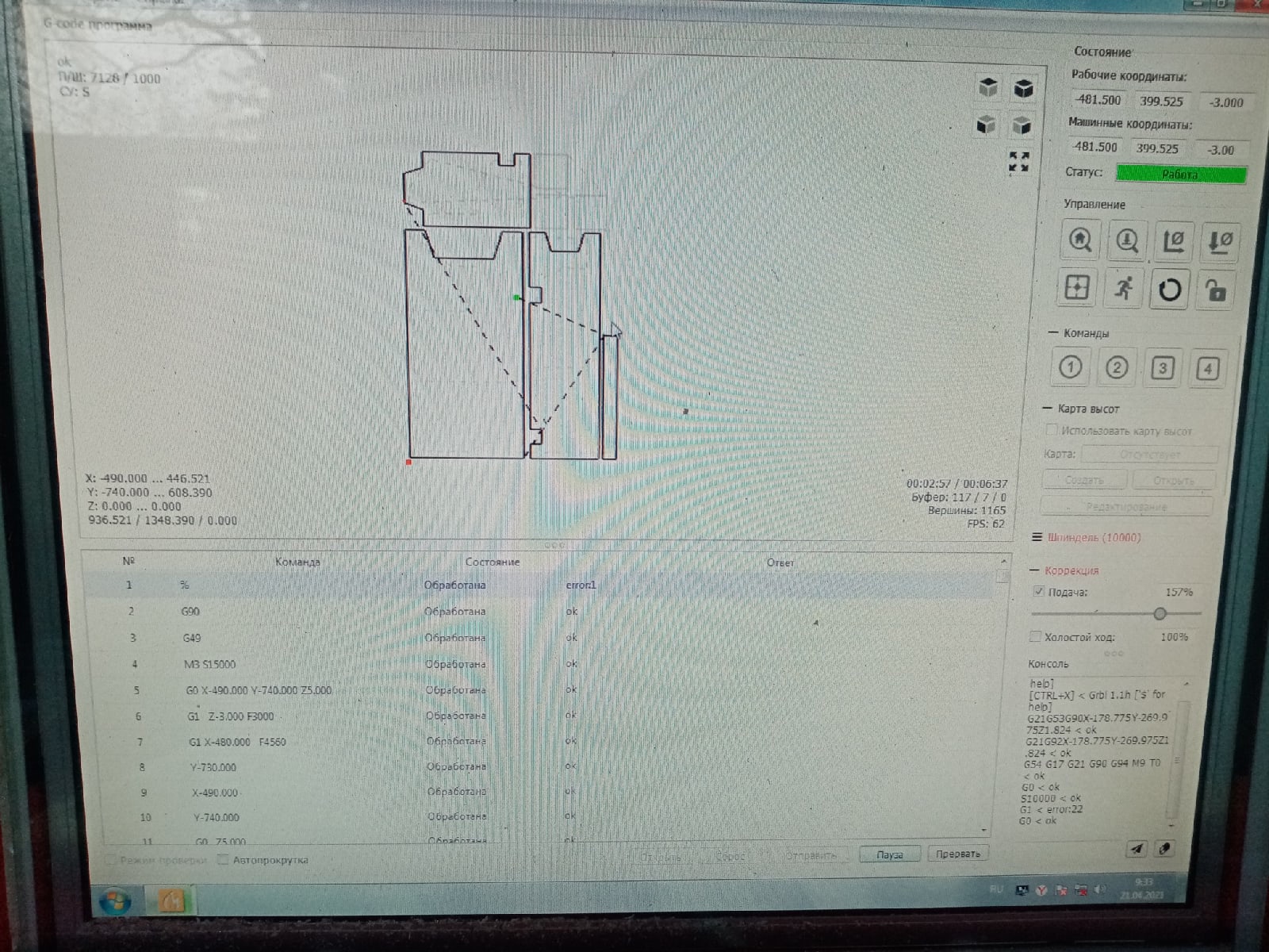 https://i.gyazo.com/19778f9e52d788c73ae ... 789b09.png - фото момента зависания, фреза на рандомной фигуре чертежа останавливается визуально, но станок проложлает резать.
