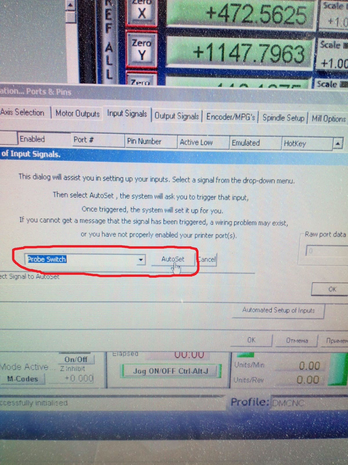 Появляется новое окно, тут выбираем "Probe Switch", Но перед нажатием кнопки "AutoSet" нужно замкнуть датчик высоты Z