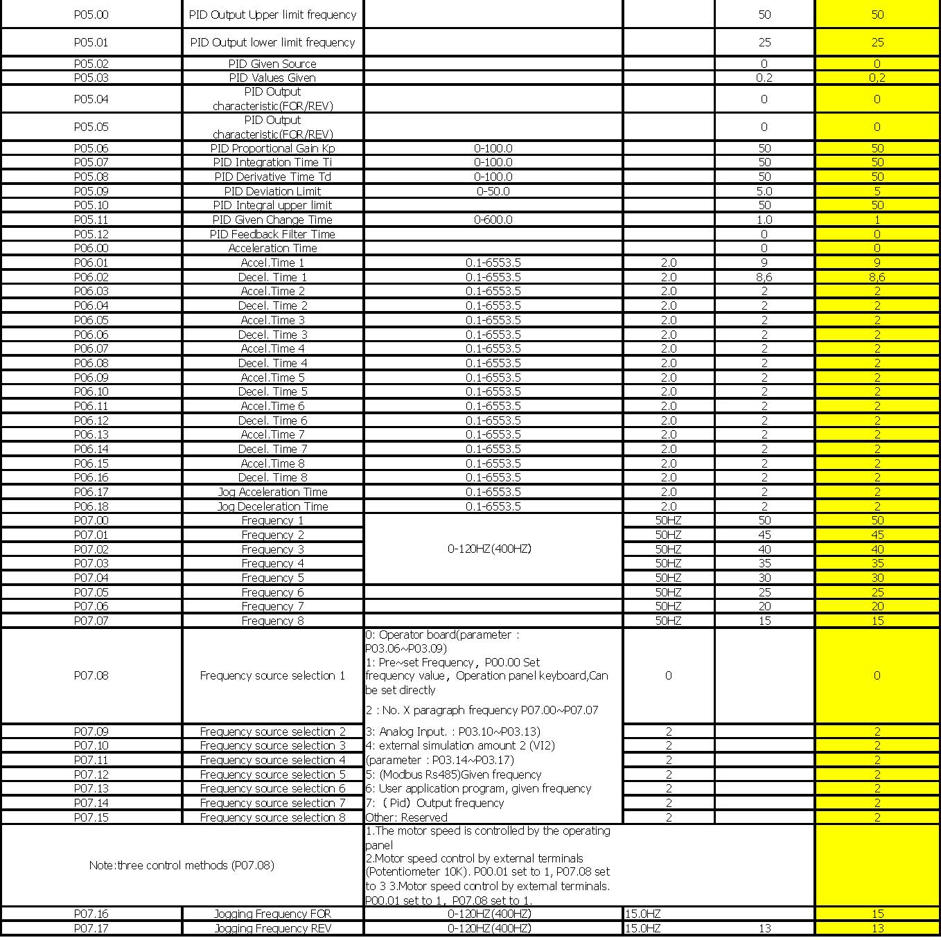 Вот поэтому у нормальных частотников мануал 200 страниц а не 20, там описано, что каждый параметр делает, даже с картинками.