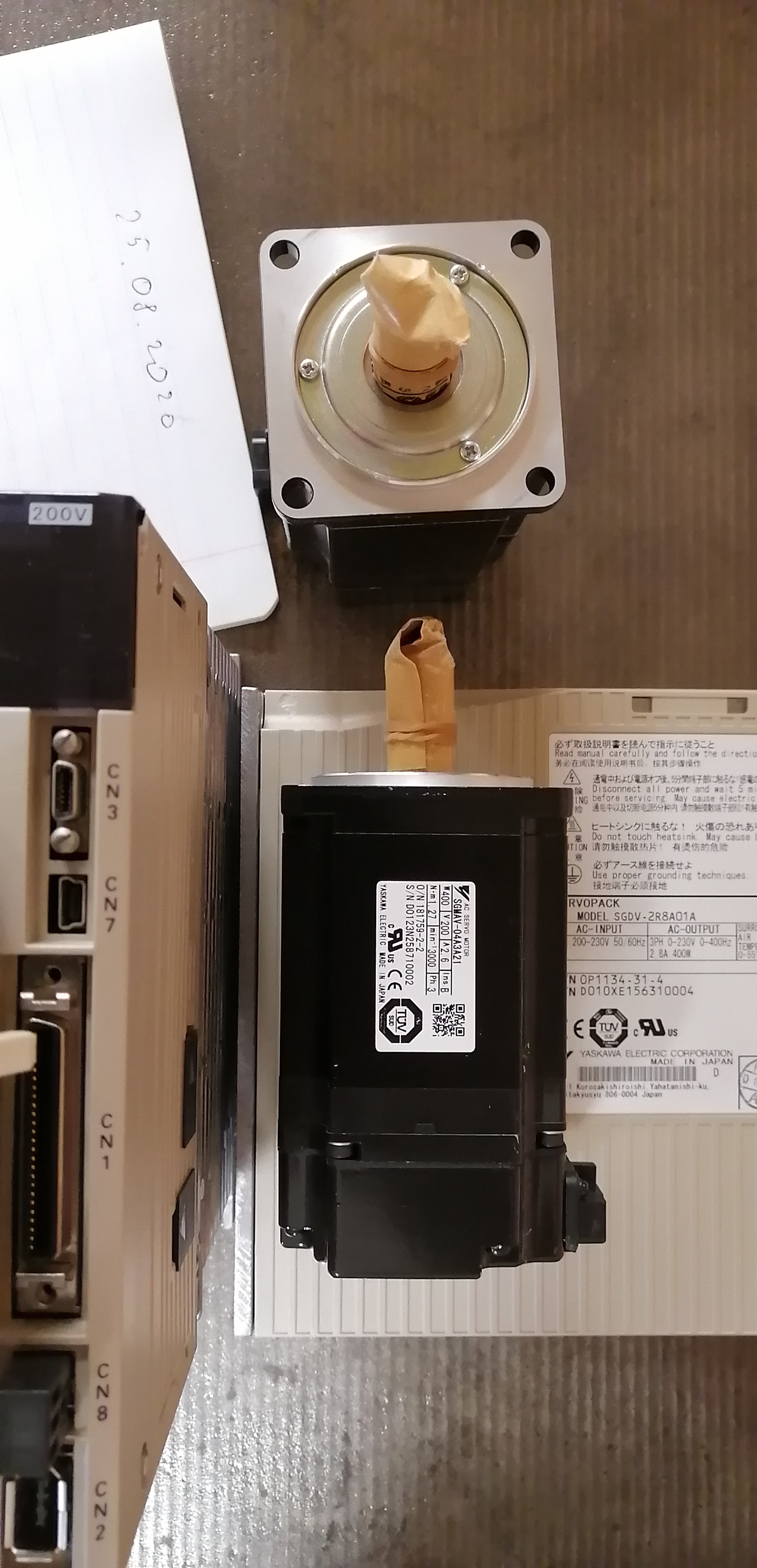 Серво комплект, изъят с хранения, НЕ БУ. SGMJV-04ADE6E + SGDV-2R8A01B (мотор+драйвер) - 400W, с тормозом, степ/дир, могут работать как от 1 фазы 220, так и от трех фаз 220 (НЕ 380!). Стоимость 33000р/комплект. Всего 1 комплект