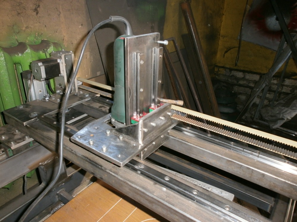 Добыл еще пару кареток на Z. собрал, привинтил жужжалку и провел тест.(Ну очень хотелось попробовать). Привод по Z еще не готов, так-что поднимал-опускал в ручном режиме.