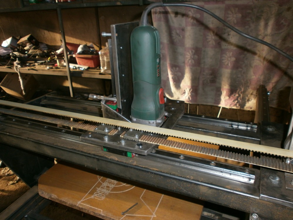 Ничего еще точного не резал, деревяшка просто на станине лежит, стол еще не готов.