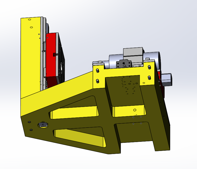 Если уж шпиндель горизонтальный, то и схему надо использовать соответствующую. Грубо говоря, сейчас стол и шпиндель надо поменять местами. И ось z конечно надо положить на станину. А так не вижу причин, для всего этого. Просто надо сделать портальную компоновку и не изобретать колесо заново. Нет никаких преимуществ у всего этого